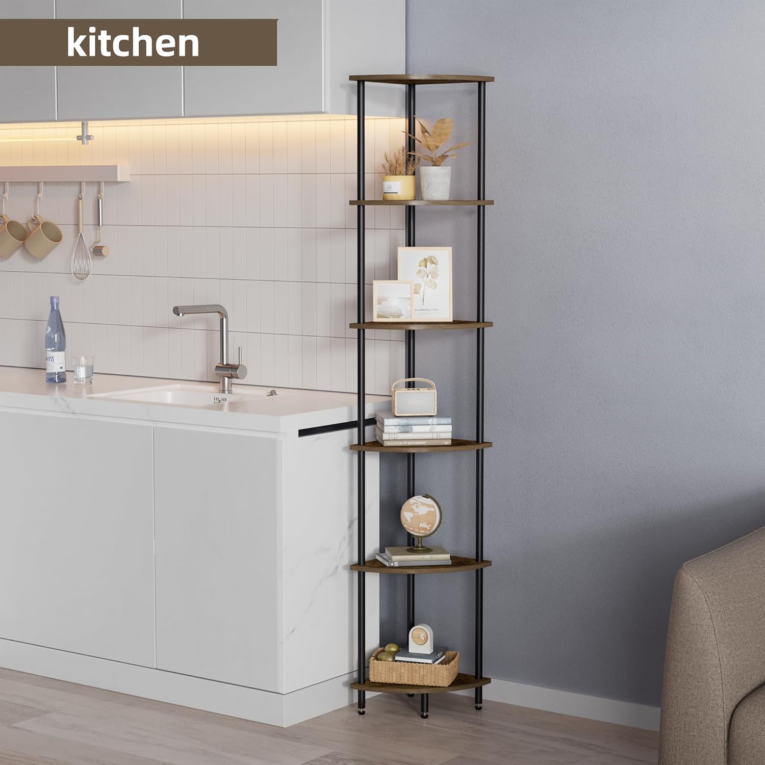 - Multifunctional Corner Shelf: With each tier measuring 11 inches in height and depth, this corner shelves is versatile enough to serve as a bookshelf, display shelf, or plant stand in various rooms such as the living room, bedroom, home office, kitchen, hallway, and balcony.