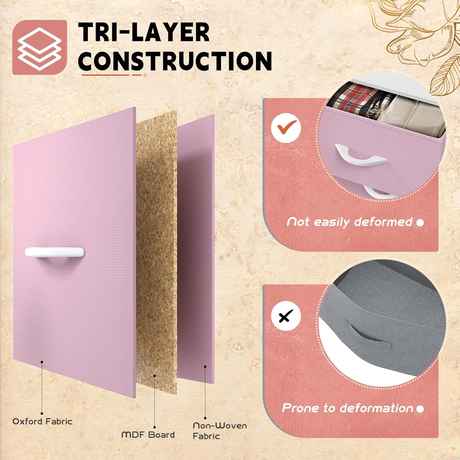 - UNIVERSAL MATCH- Sleek pink fabric drawers, sturdy white metal frame and wooden tabletop give the storage organizer a modern style. This unit easily fits in various living spaces: living rooms, hallways, entryways, closets, etc.