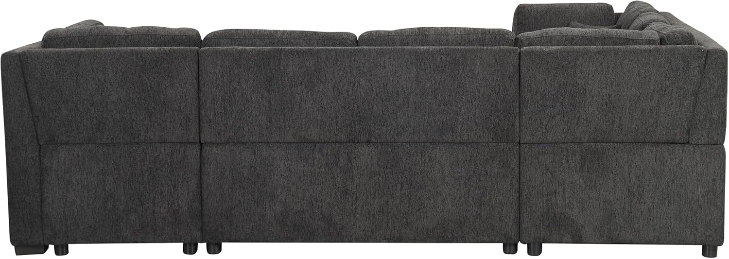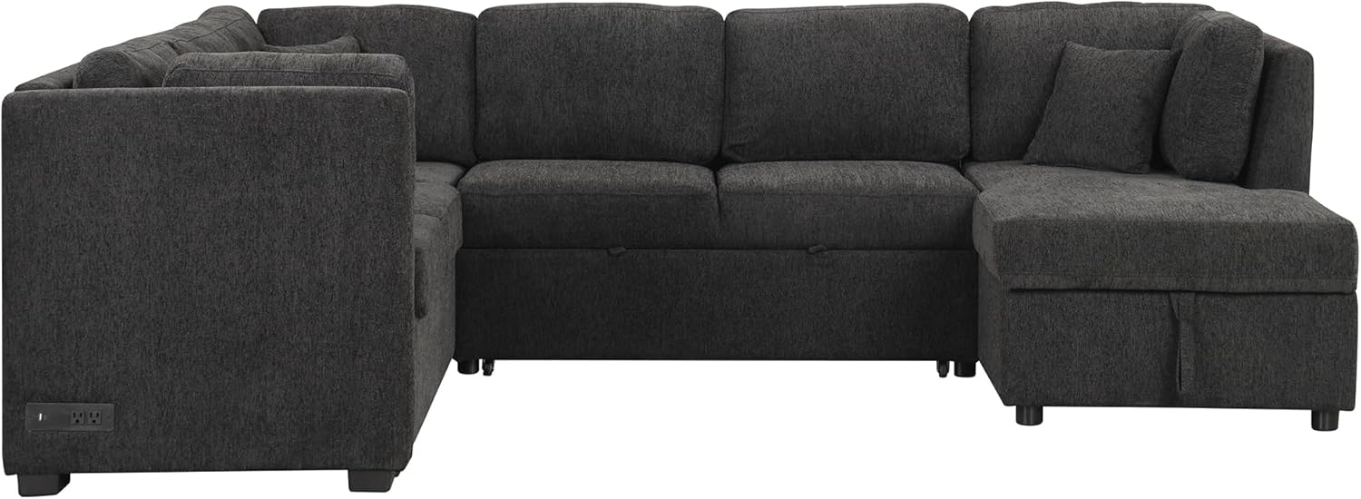 Ball & Cast 108.6" Sleeper Sectional Pull Out Sofa with 2 USB Ports,Two Power Sockets,Versatile U-Shape Couch w/ 3 Back Pillows and Storage Chaise,for Living Room,Office,Apartment,Black