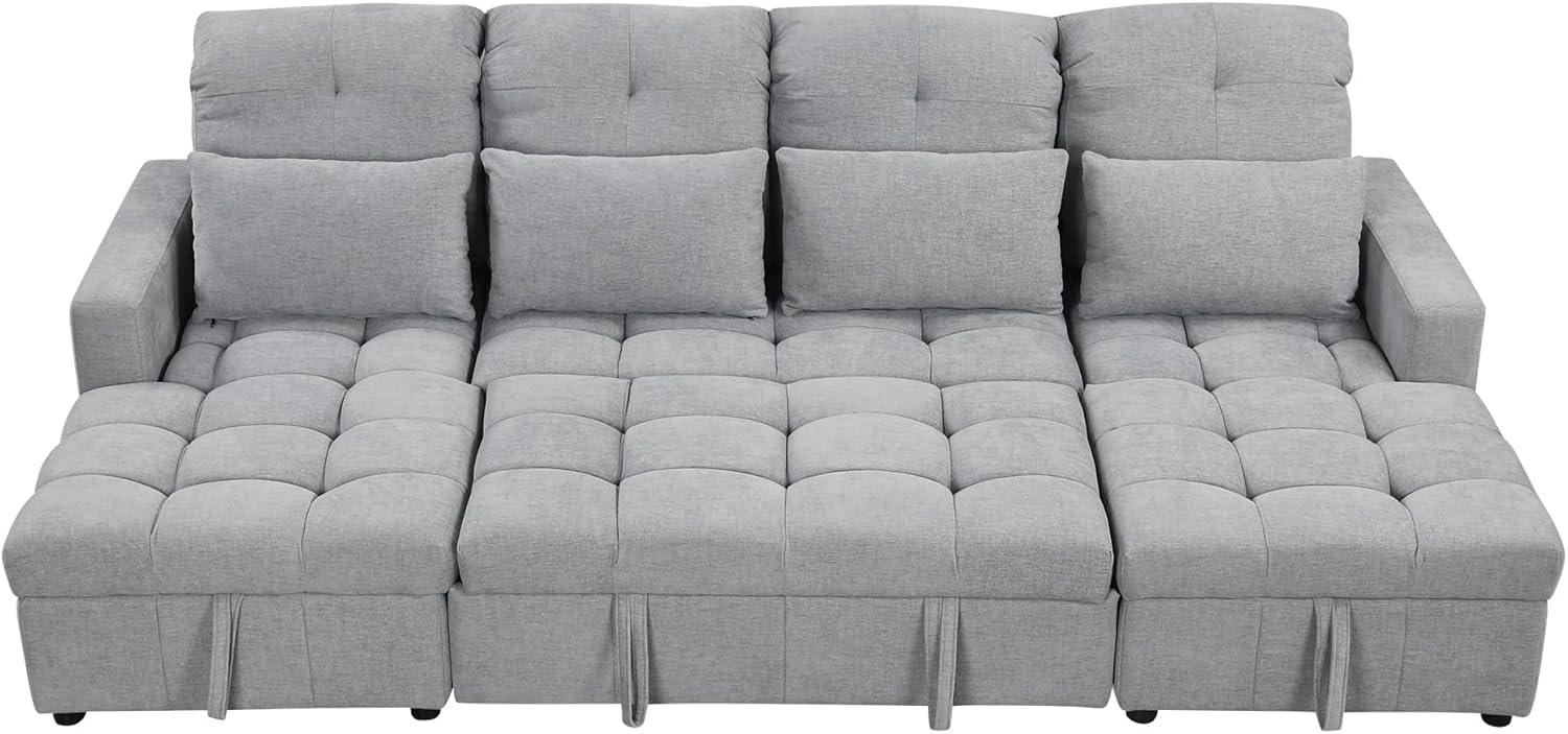 Ball & Cast 110.2" Oversized Versatile Sectional Sleep Sofa with Two USB Ports,U-Shape 4 Seat Pull-Out Couch w/Double Storage Chaise Lounges,for Living Room,Apartment,Office,Gray