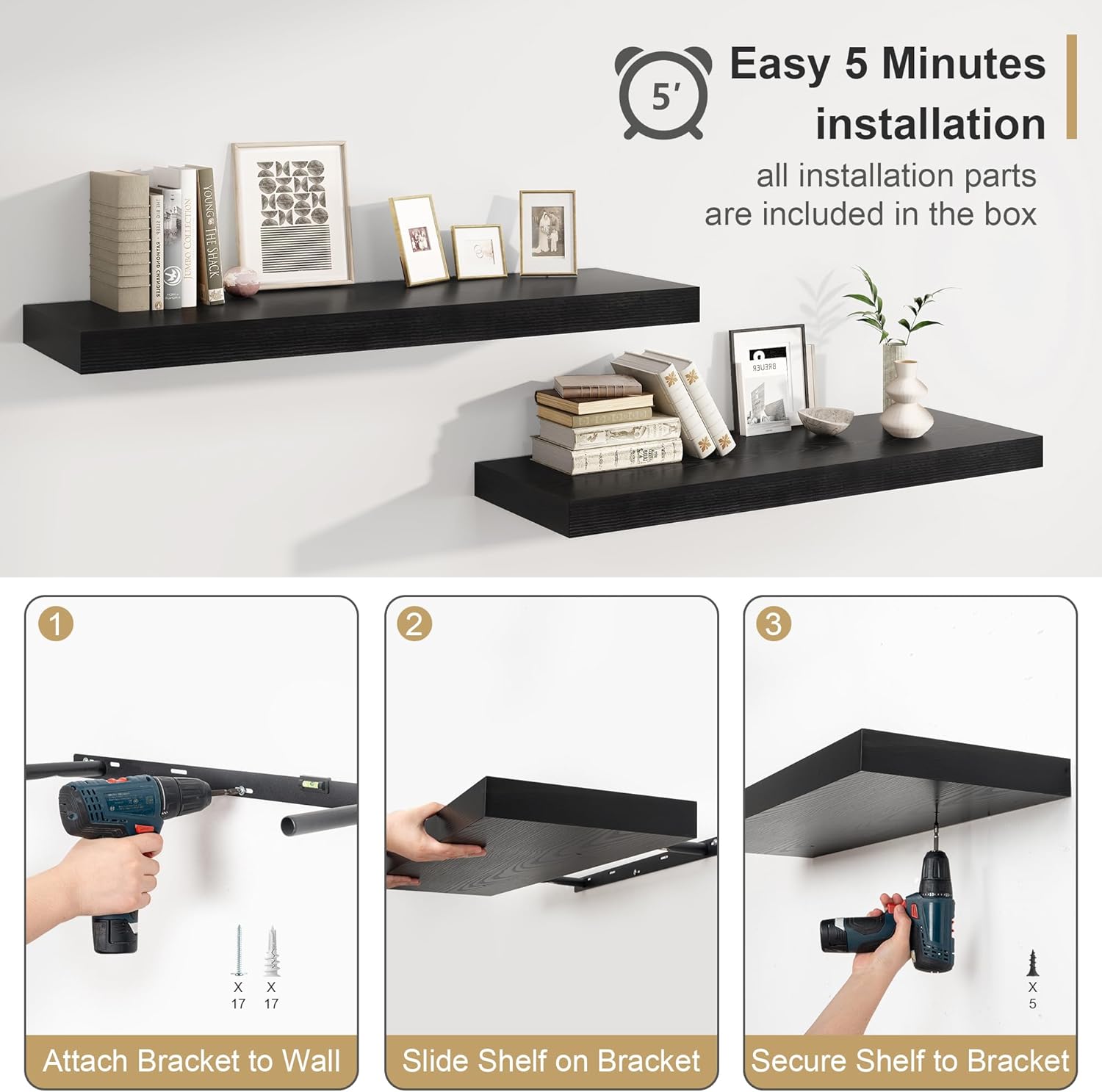 - Sturdy and Easy to install: Includes all necessary hardware to make these floating shelves extremely easy to assemble. We also provide you with detailed install instructions for you to install the shelves in a few minutes.If youβre looking for an easy way to add some functional style to your room, It highly recommend definitely recommend giving these a try!