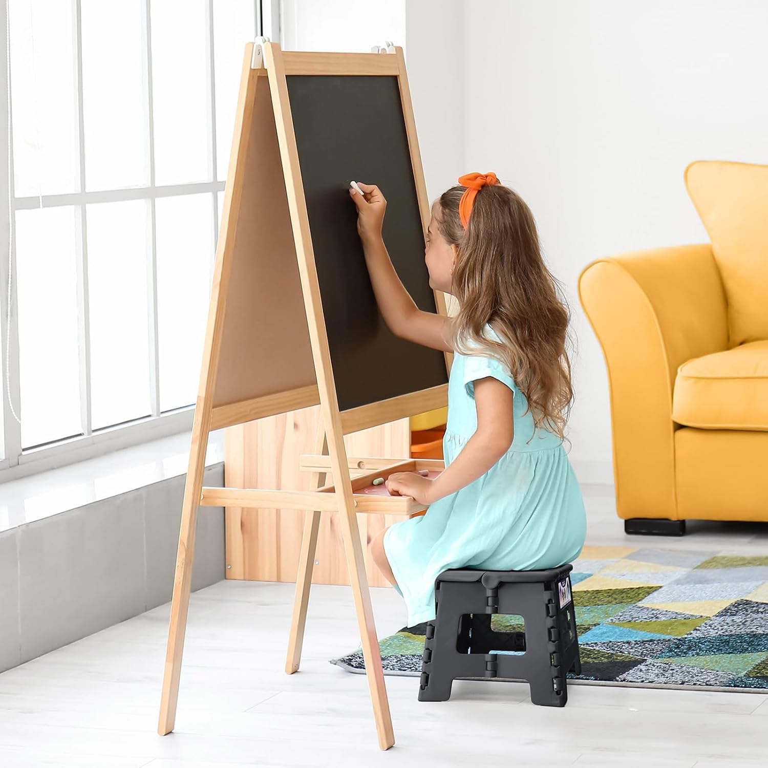 - Space Saving Foldable Stool : Delxo step stool save your closet space more than 90% when it folded up.It's quickly and easily folds away for convenient storage so you can opens with one flip of the hand.Also you can hides them in corner at home because it's so compact