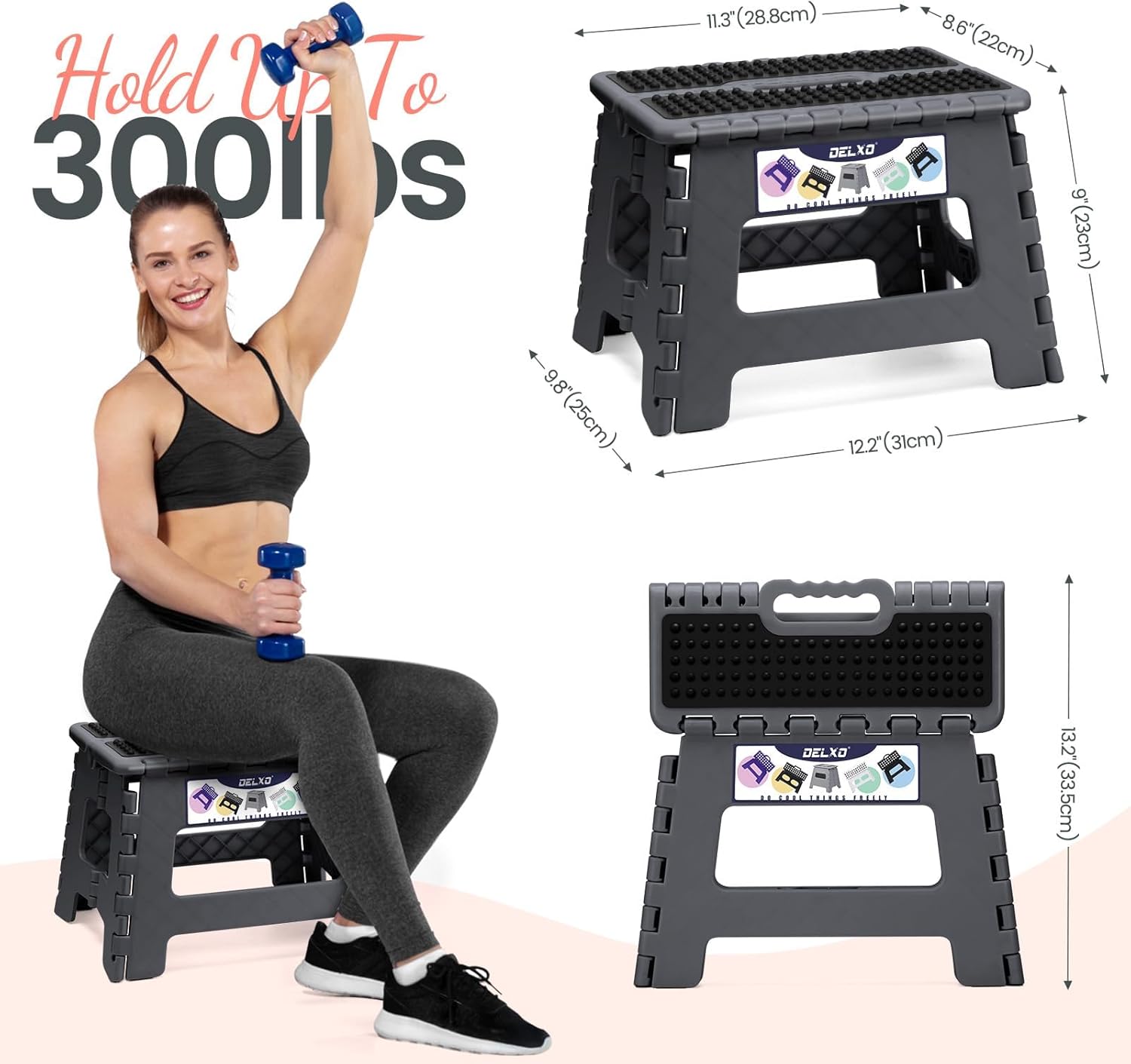 - Safe Upgrade Step Stool : Delxo have designed a safety stop gap feature that allows the foldable stool to prevent being squashed, great for adults. Four round corner super safe protect your body from clashing. All of this design is put your safe first