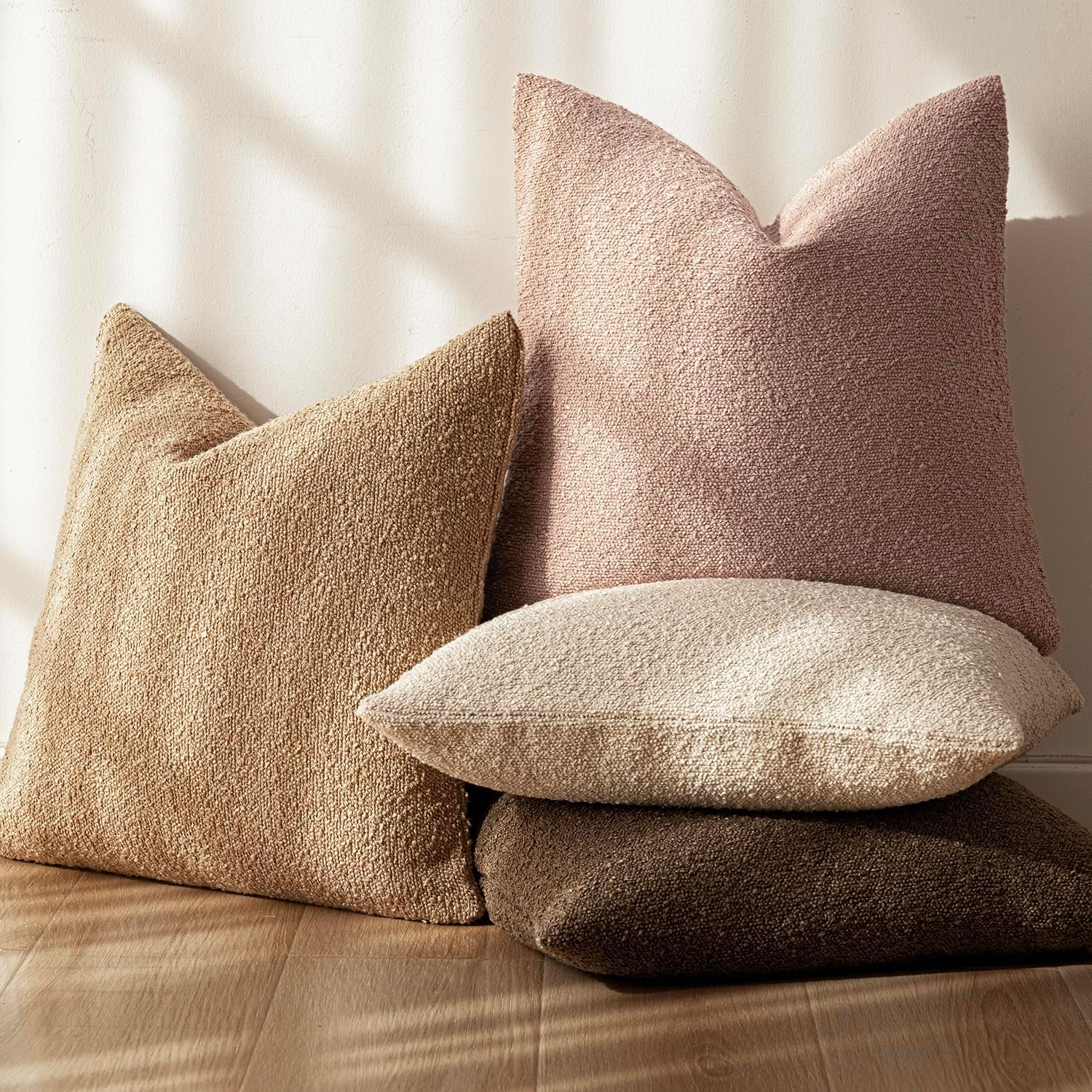 Foindtower Set of 2, Decorative Textured Boucle Throw Pillow Covers Accent Solid Pillow Cases Neutral Soft Cozy Couch Cushion Case for Chair Sofa Bedroom Living Room Home Decor 18 x 18 Inch Light Pink