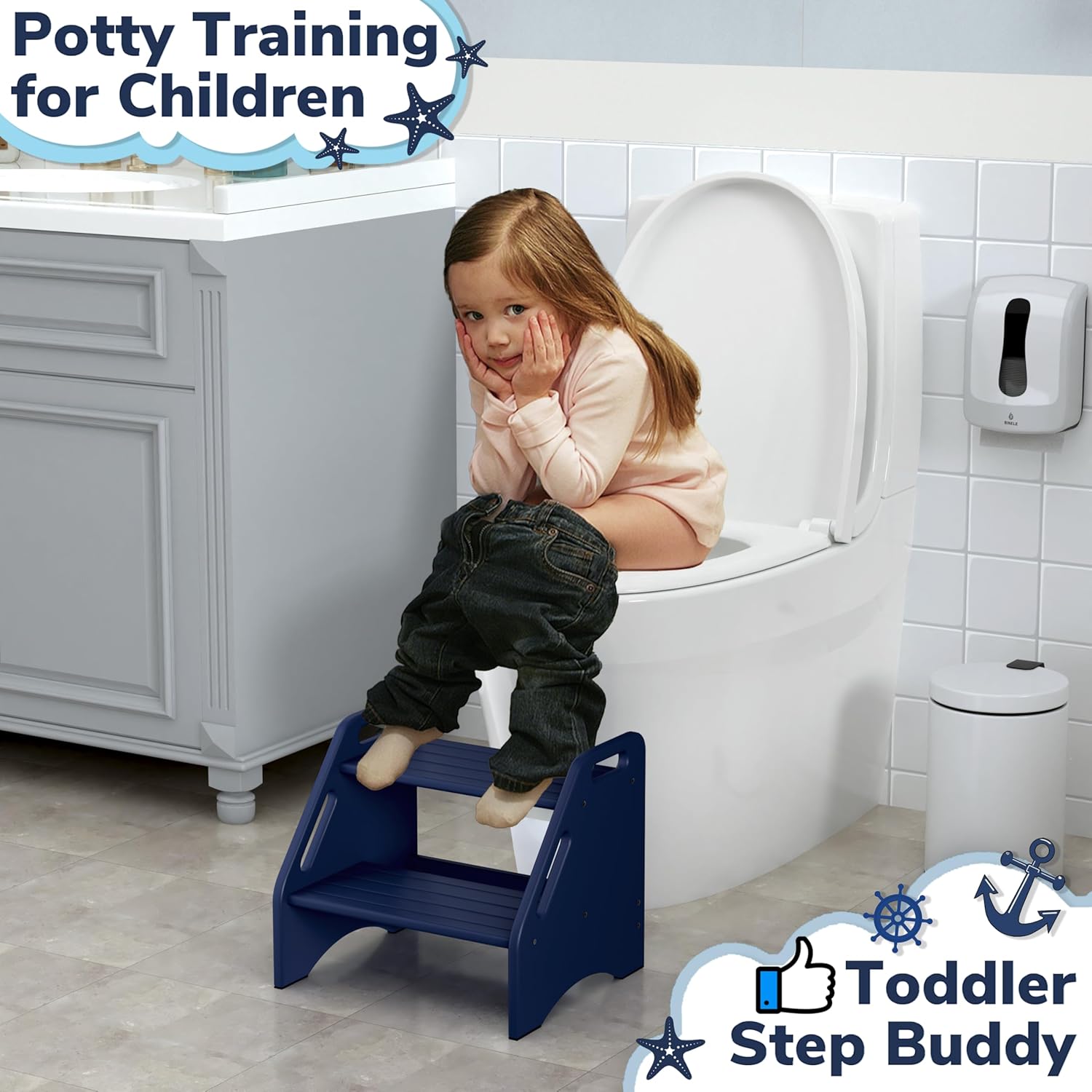 - HELPING KIDS WASH THEIR HANDS AND TOILET TRAINING: AMBIRD toddler step stool is suitable for the kitchen sink, bathroom toilet, bookshelf; It can help children wash their hands, brush their teeth, go to the toilet and take things; You can also use the toddler stool to go to the child for toilet training, to develop the child's independence and more helpful to the child's growth