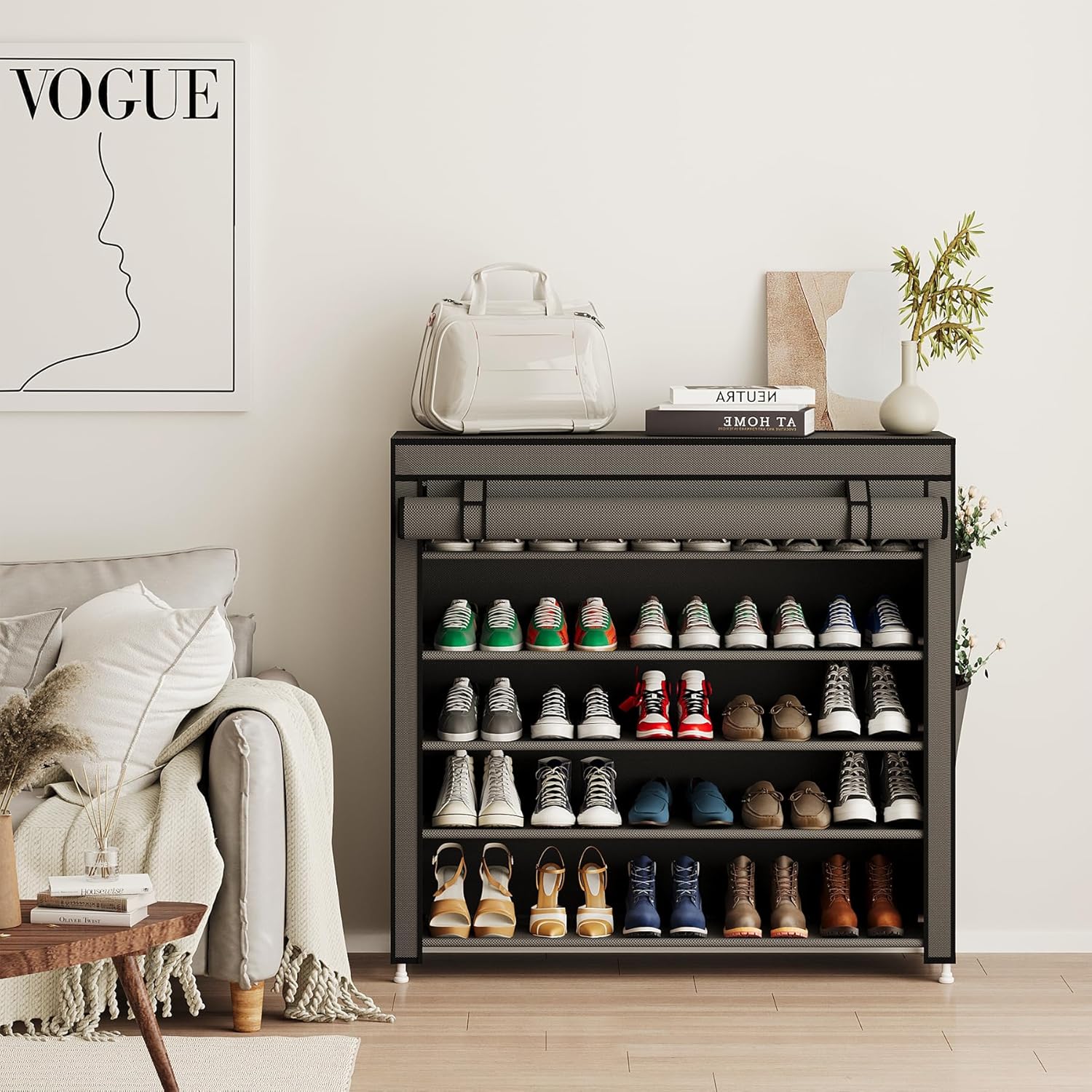 - Adjustable & Expandable – Modular tiers each hold 4–5 pairs of shoes. Spacing can be customized to accommodate boots, sneakers, or sandals with ease.