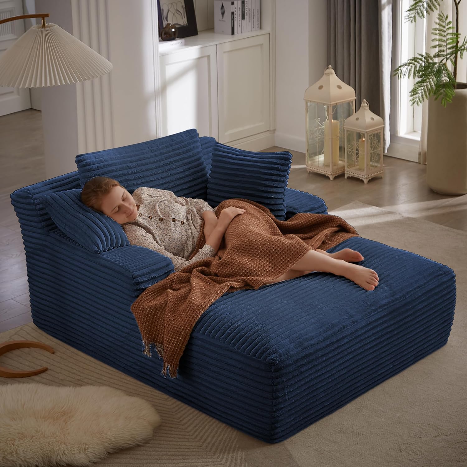 Oversized Chaise Daybed Lounge Sleeper Chair Sofa Full Foam Cloud Chaise Sofabed for Living Room,Luxury Plush Corduroy Upholstered Sleeper Couch Extra Wide Chair Bed W/3 Pillows for Home/Apartment