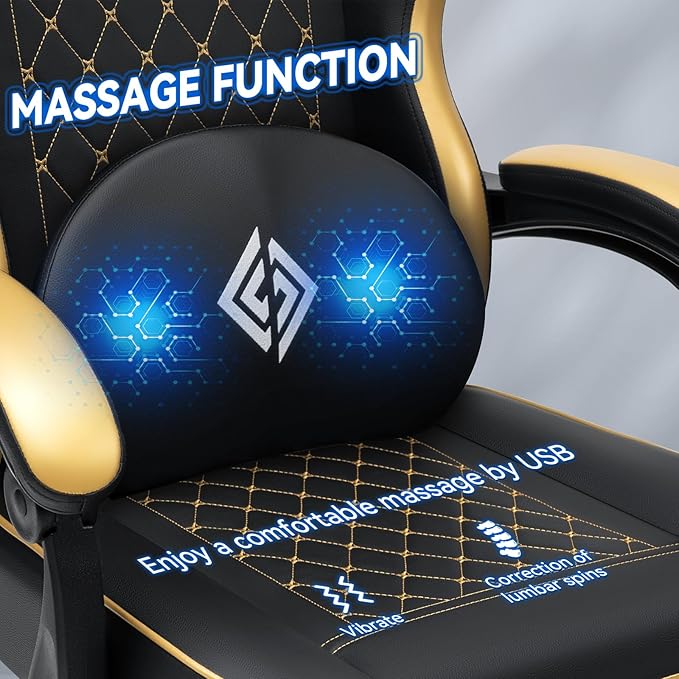 - 【Massage Gaming Chair】Gaming chair features 2 points massager that powered by USB and memory foam lumbar pillow provides a soft support and comfort for gaming or homework.