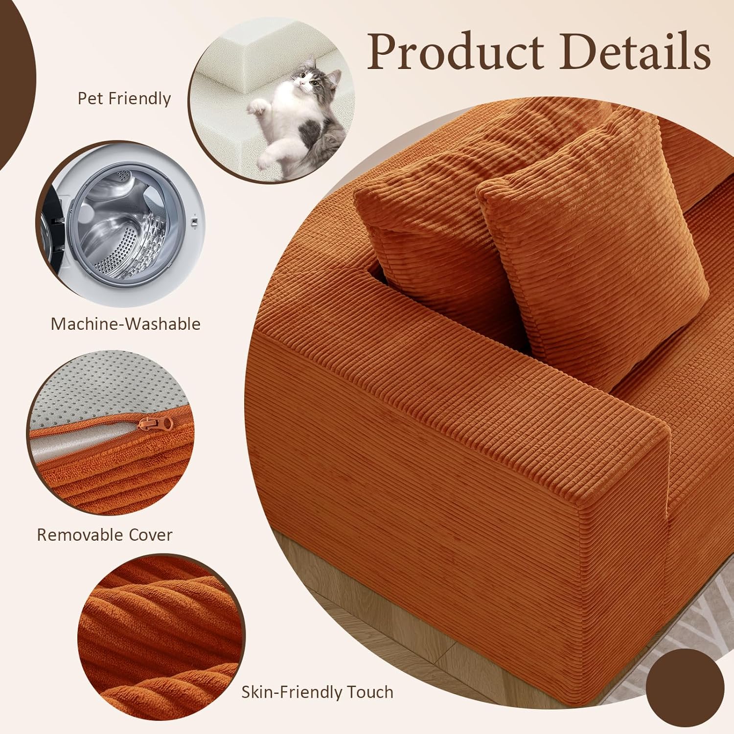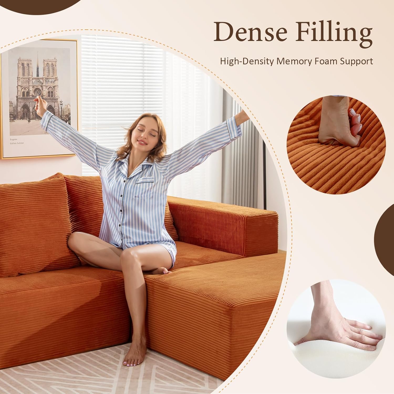 - ăPremium Corduroy ComfortăIndulge in sumptuous corduroy upholstery on our modern couch, designed as a luxurious entry in cloud sofas for living room with stain-resistant durability, offering unrivaled warmth and style