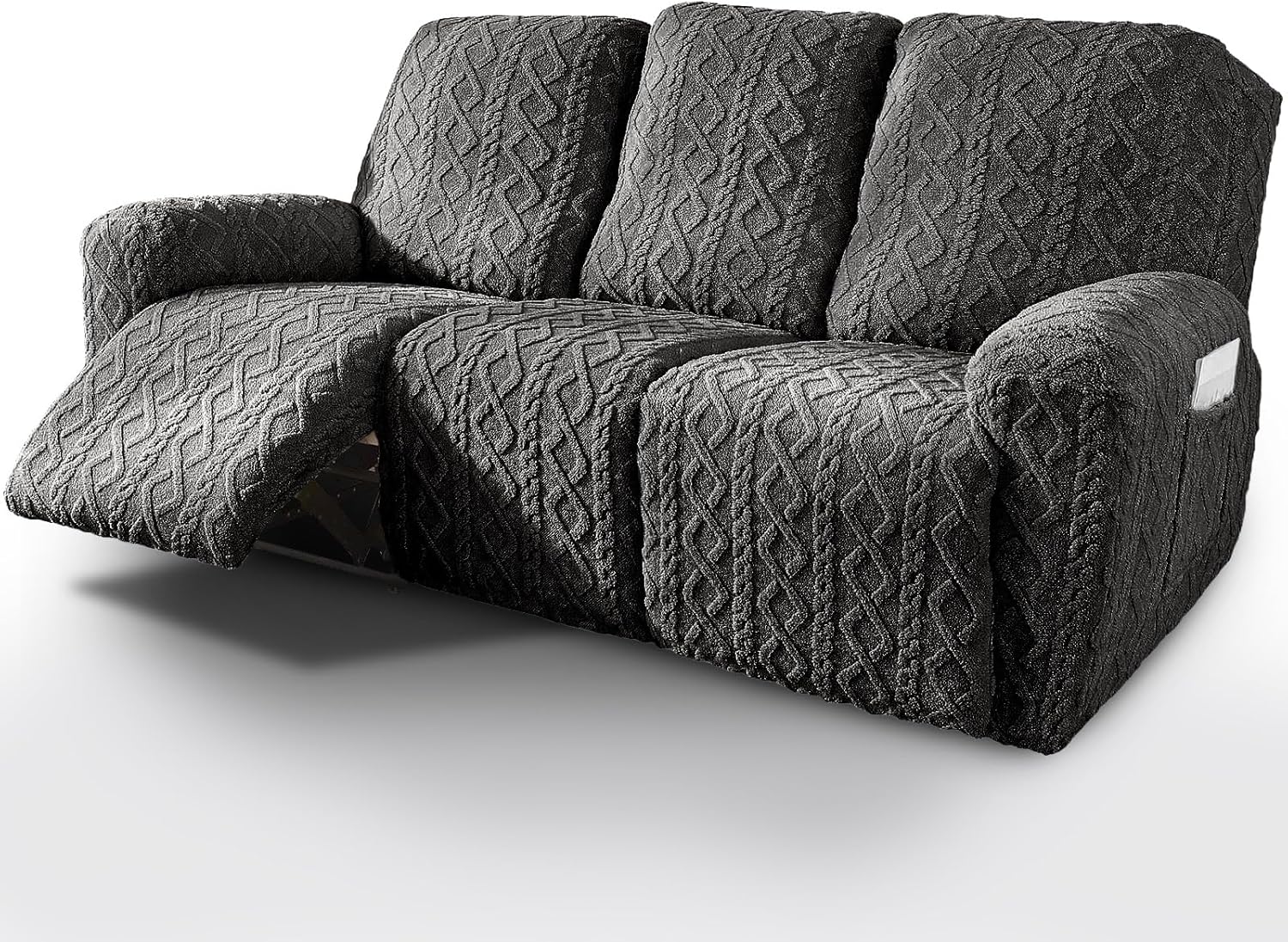 - Package Included: Solid color geometric 8-piece recliner cover contains 3 piece seat cover, 3 piece back cover and 2 pieces arm covers. Fit sofa seat width below 92.1 inch.