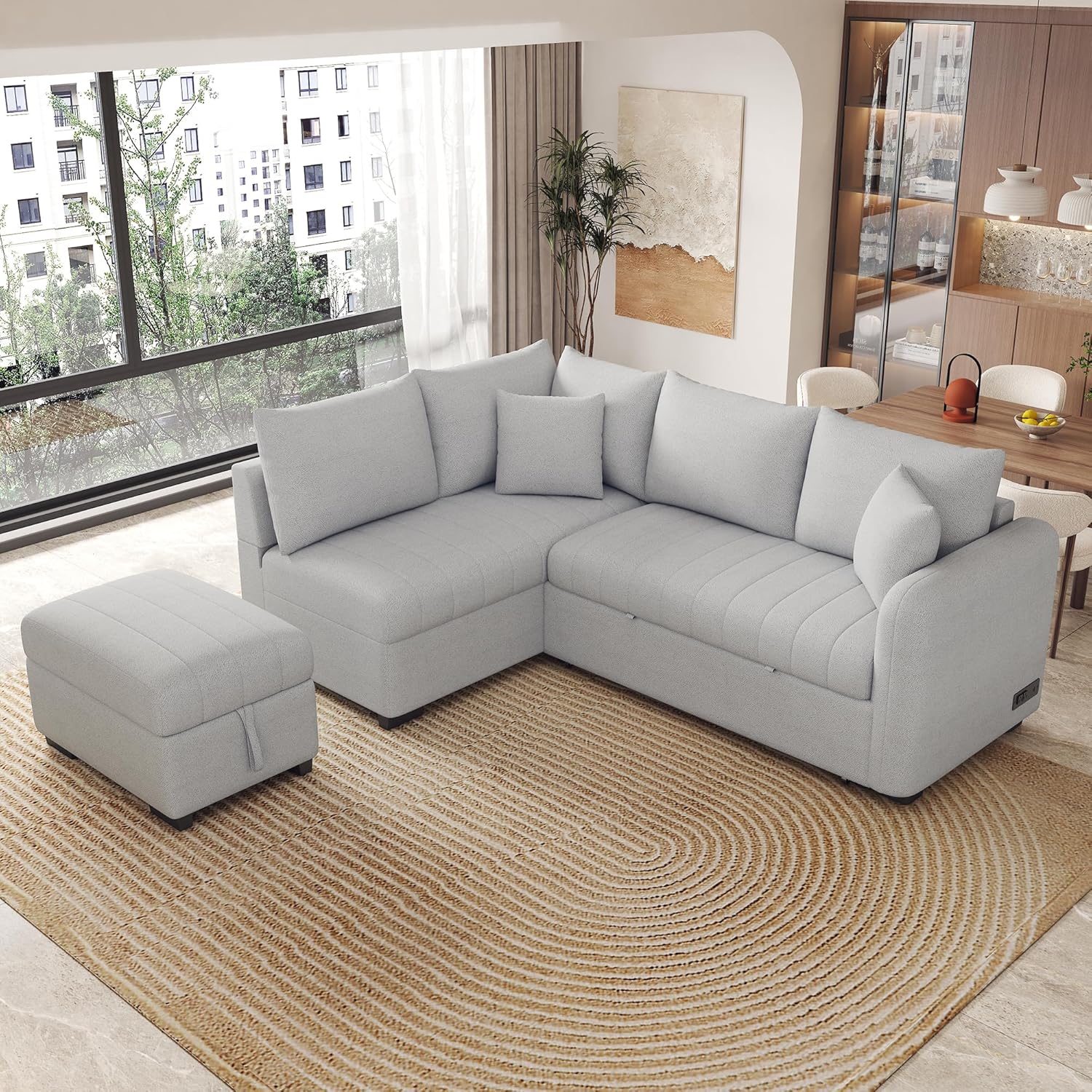 - 【Comfortable Day Bed】: The sectional pull-out sofa bed provides luxurious comfort with an ergonomic backrest and thick seat cushion, ideal for lounging throughout the day. The pull-out bed feature allows it to quickly convert into a guest bed, perfect for accommodating family and friends. The included removable pillows add to the cozy experience, making it a perfect day bed for relaxation.