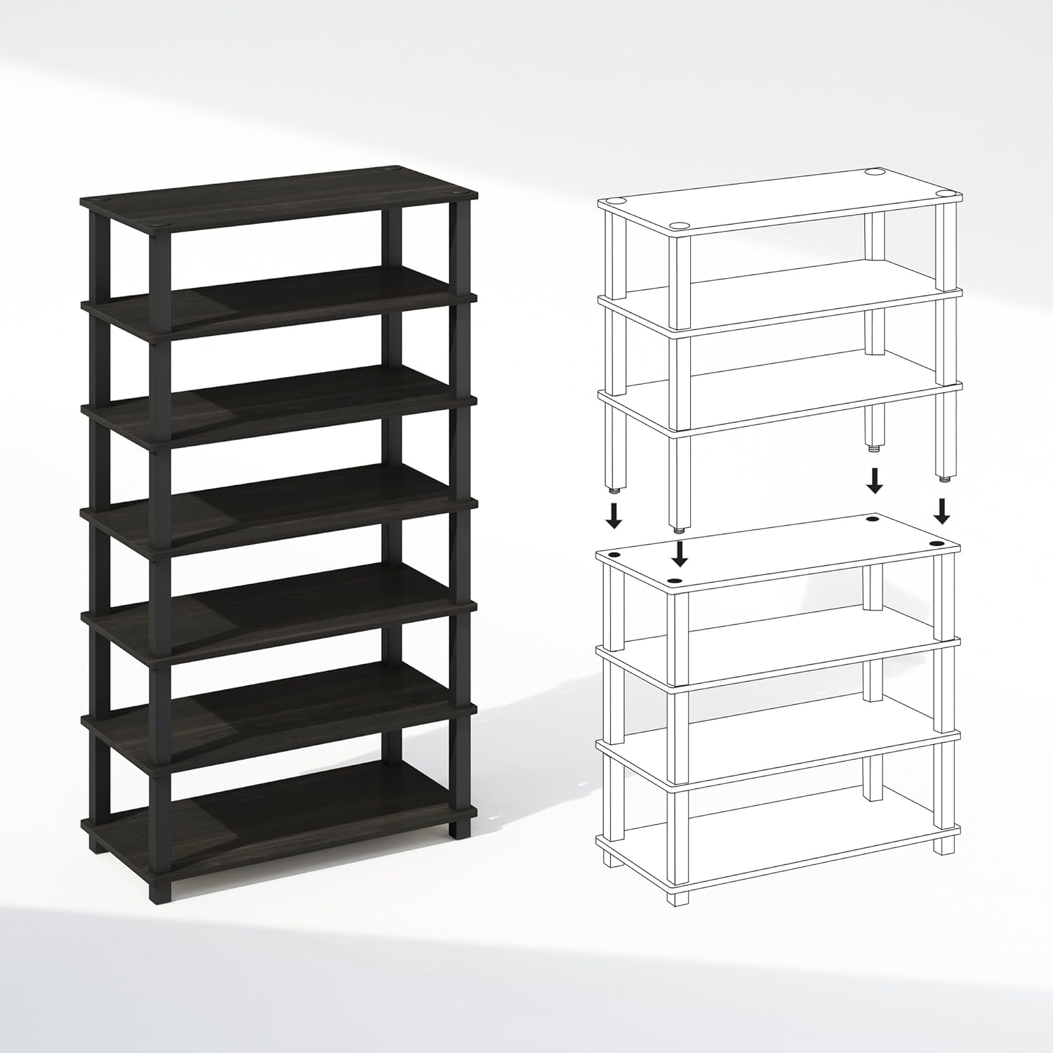 Furinno Turn-S-Tube 4-Tier Multipurpose Standing Shelves, Espresso/Black, Set of 2