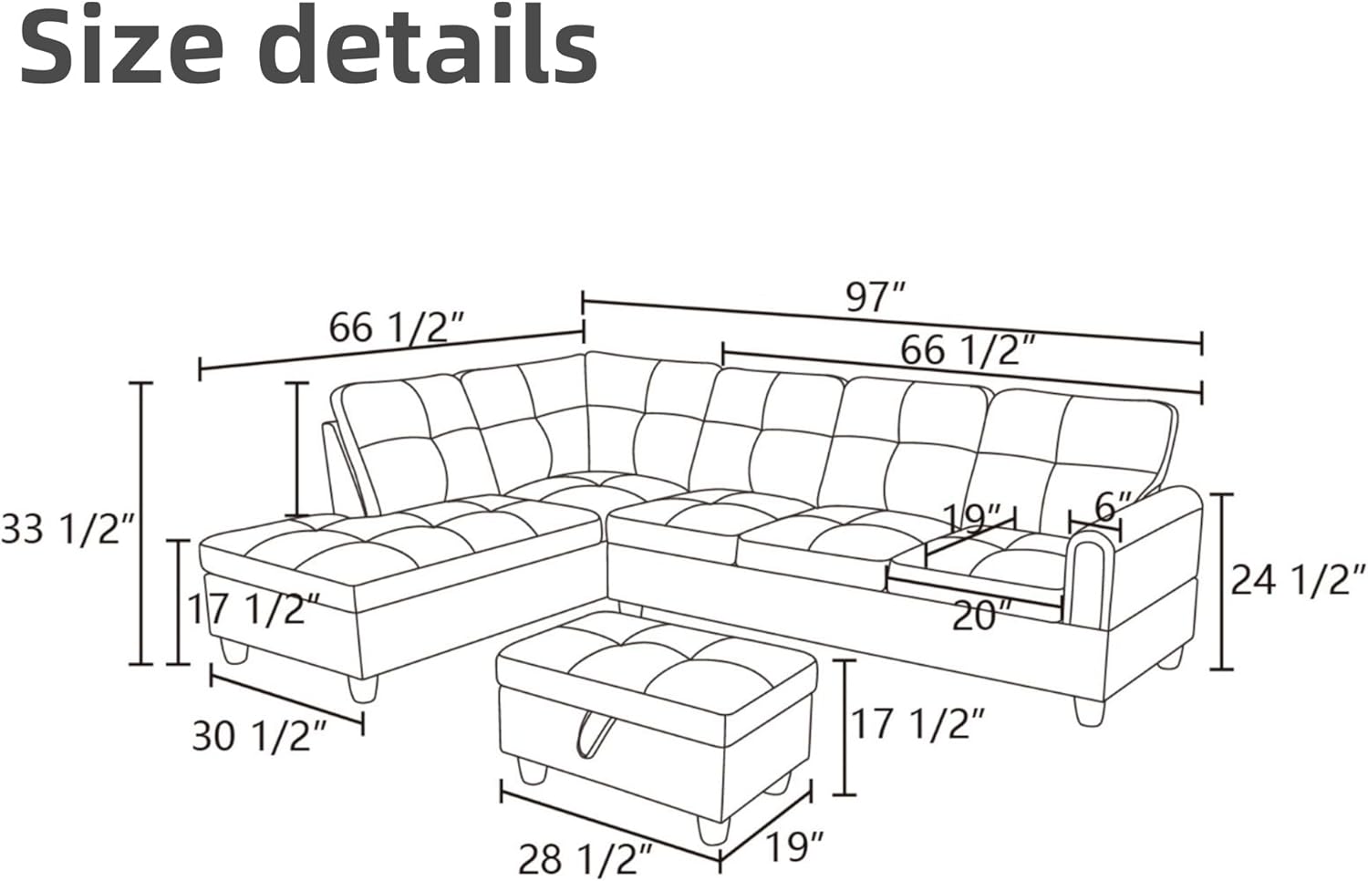 - Versatile Functionality: Use the sectional sofa ottoman not only for storage but also as extra seating or a footrest, making it a multifunctional addition to your living area