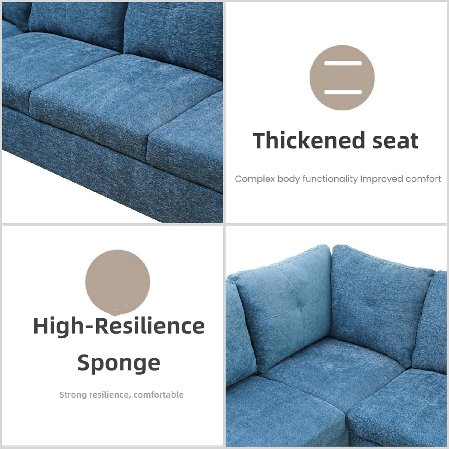 L Shaped Sectional Couches for Living Room, Modern Modular Sectional Sofa with Ottoman Storage, Comfy L Shaped Couch with Chaise for Bedroom Apartment Furniture, Blue