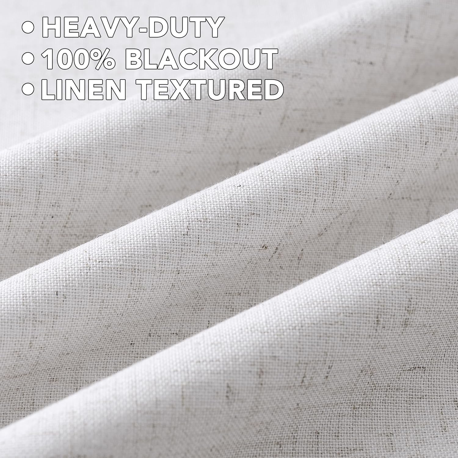 - 100% BLACKOUT: These elegant nature linen curtain is passed GLOBAL RECYCLED STANDARD certificate, has white color lining on backing, definitely can block out 100% bright sunlight and UV ray, turn day into night, just enjoy your sweet sleeping and protect your furniture from color fading, providing entire privacy in your place
