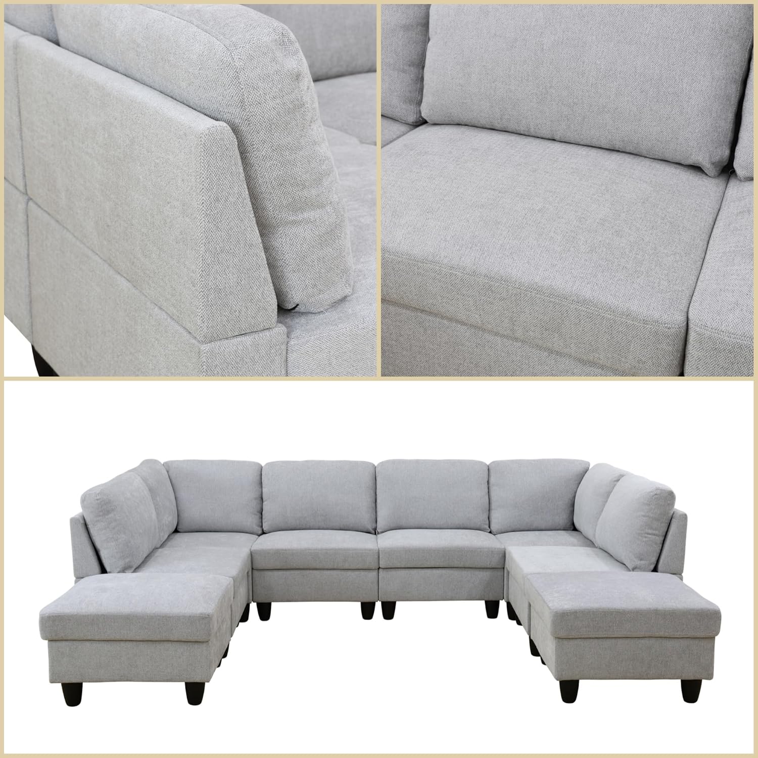 U Shaped Sectional Couch, Convertible Modular Sectional Sofa with Ottomans, 8 Seat Comfy Corner U Shaped Couch Lounge Modern Modular Couches for Living Room Apartment, Grey