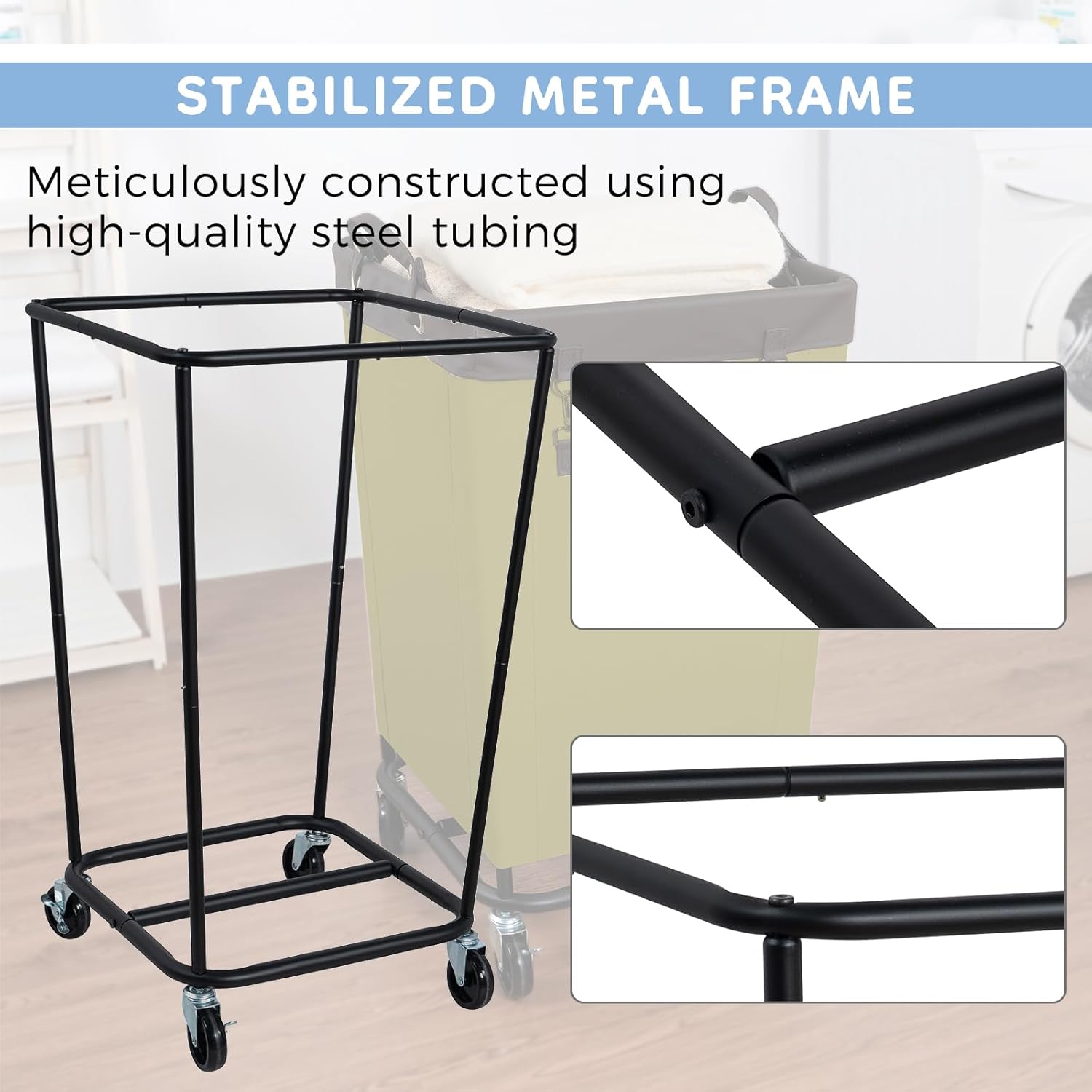FLYBOX Laundry Hamper with Wheels, 160L Capacity, Steel Frame, Removable Canvas Bag, Dark Green
