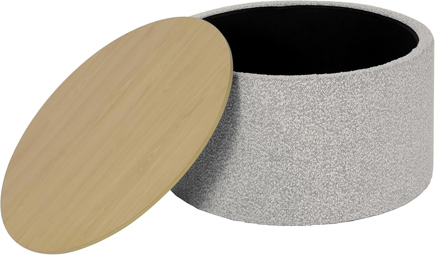 HomePop Modern Fabric Storage Ottoman with Wood Top -White Cream Boucle with Gray Yarn