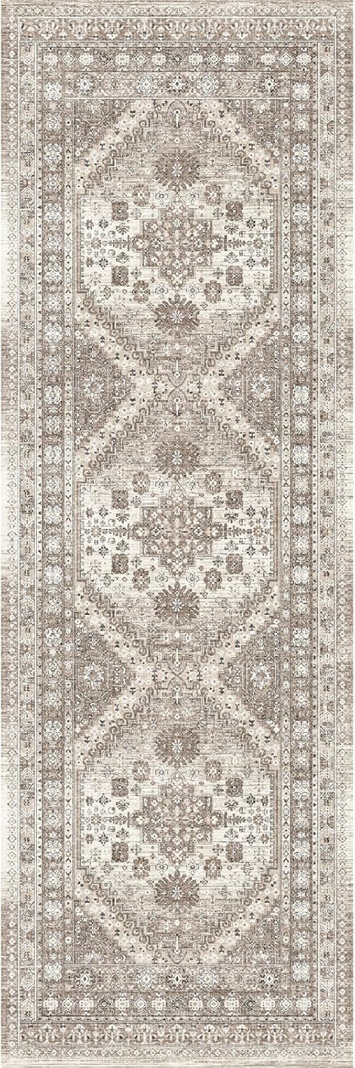 zesthome Washable Runner Rug 2.5x8 - Stain Resistant Entryway Rug,Ultra-Thin Kitchen Rugs, Anti Slip Backing Runner Rugs for Entrance Laundry Room Indoor Hallway (Brown/Beige,2.5'x8')