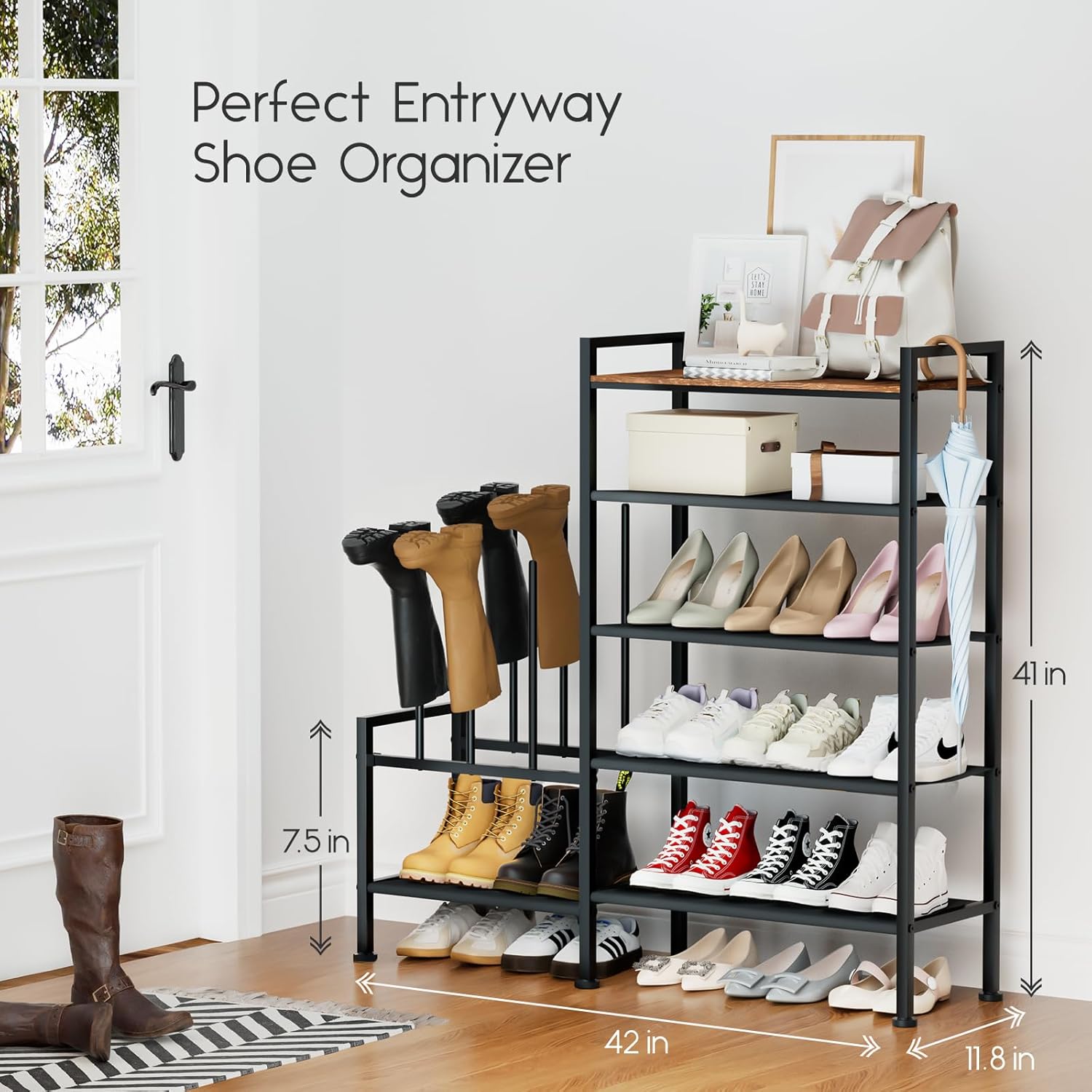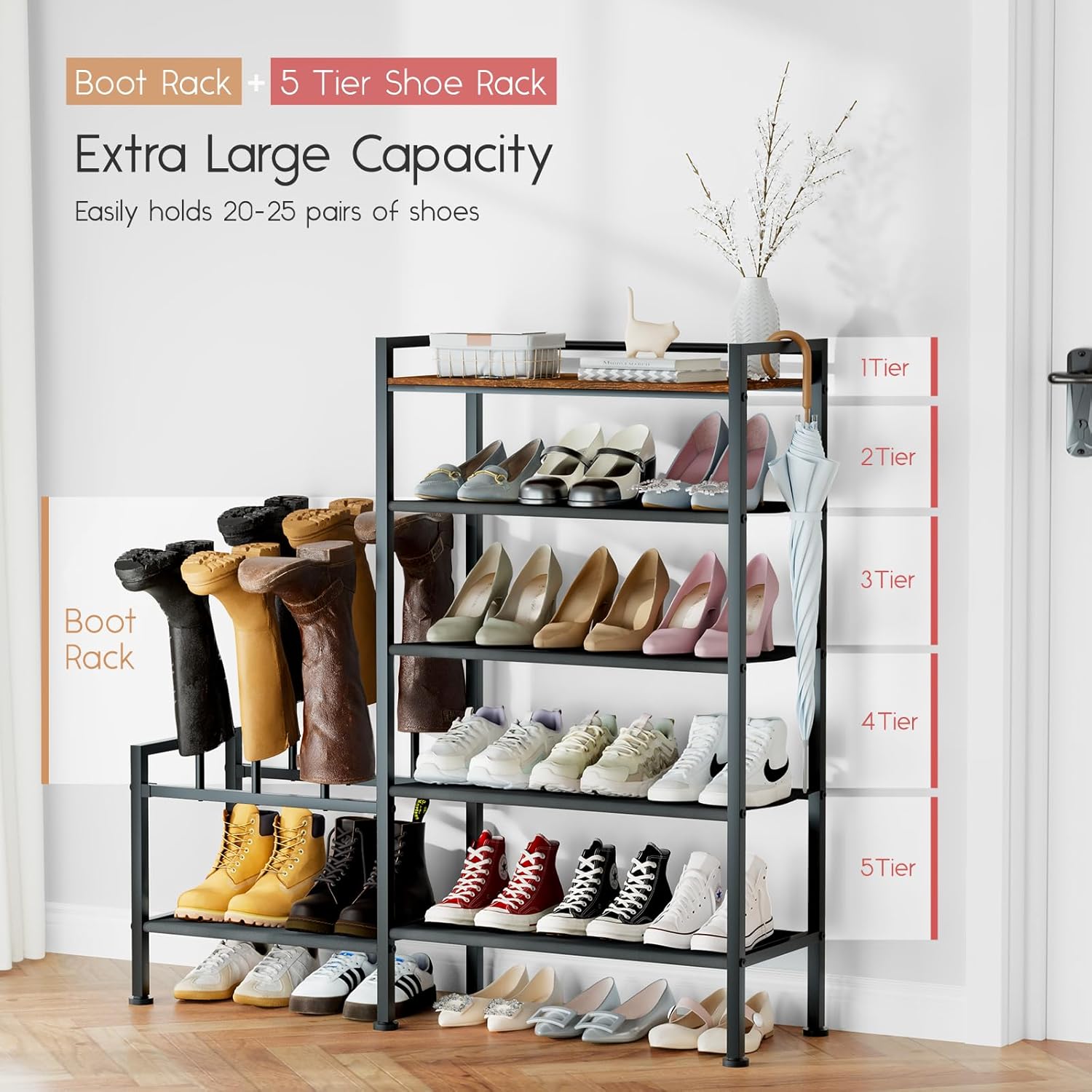 Shoe Rack Organizer and Storage - 5 Tier Metal Shoe Rack with Boot Storage & Side Any Combination - Space Saving Shoe Shelf for Entryway, Bedroom, Closet, Garage, Small Spaces