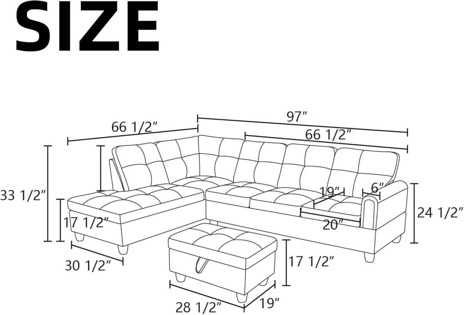 - Sturdy Structure: This sectional couches adopts solid wood and metal frame to ensure stability; each seat can bear up to 300 pounds and can comfortably accommodate family and friends