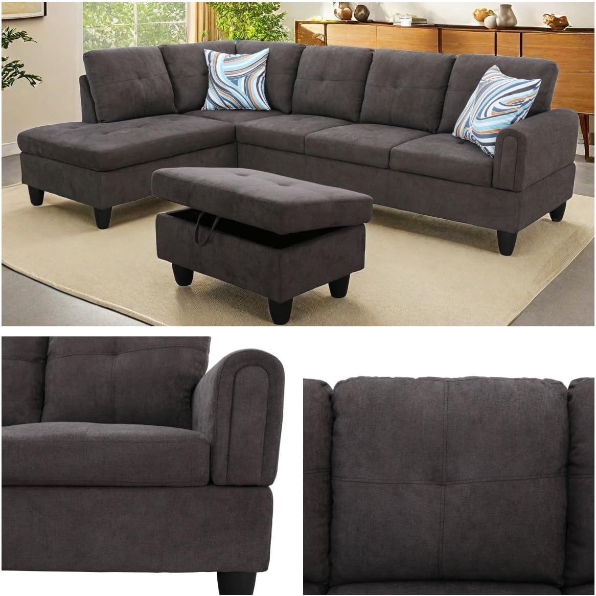 NAYSAYE Sectional Couch with Ottoman Storage, L Shaped Couch Sofa Furniture Sets, Modern Comfy Modular Comfy Sofa for Living Room Bedroom, Office and Apartment, Brown