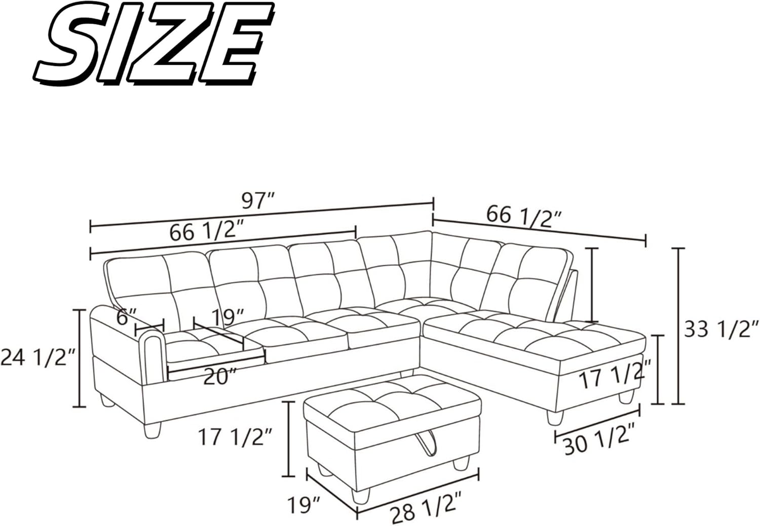 - Sturdy Structure: This sectional couches adopts solid wood and metal frame to ensure stability; each seat can bear up to 300 pounds and can comfortably accommodate family and friends