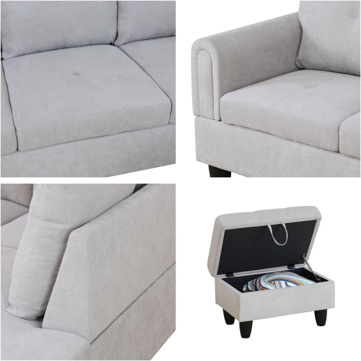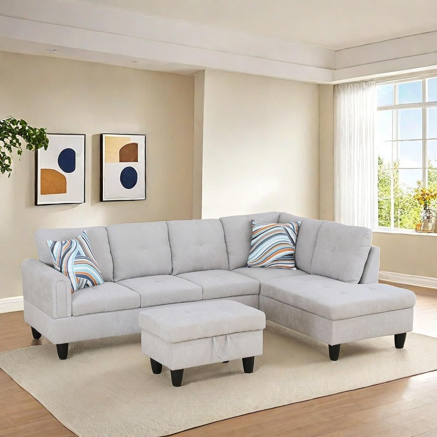 NAYSAYE Sectional Couch with Ottoman Storage, L Shaped Couch Sofa Furniture Sets, Modern Comfy Modular Comfy Sofa for Living Room Bedroom, Office and Apartment, Grey