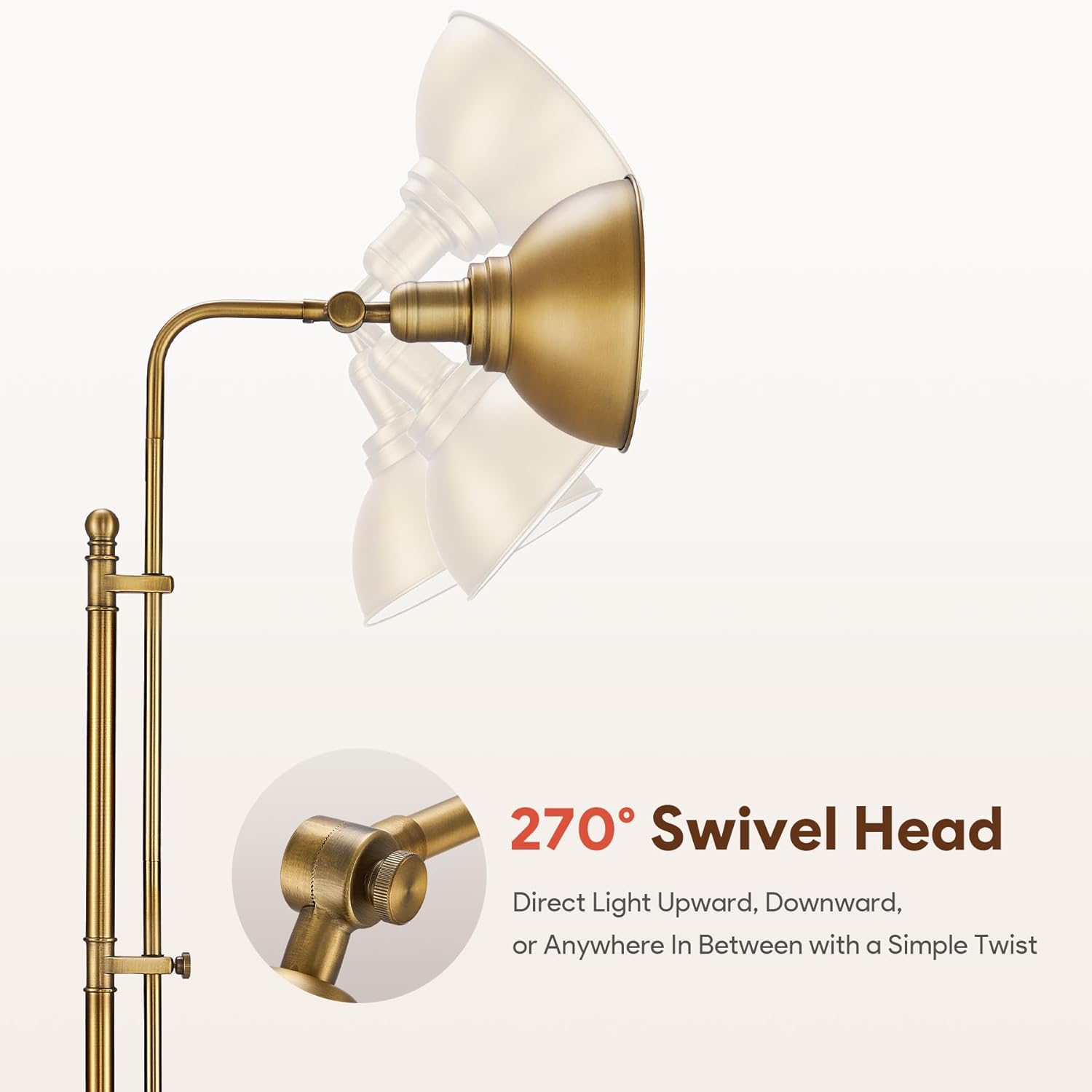 VONLUCE Floor Lamp for Living Room, 65" Industrial Brass Floor Lamp Adjustable Height & Head Vintage Metal Standing Reading Pole Lamp for Bedroom, Office, Farmhouse, ETL Certificate