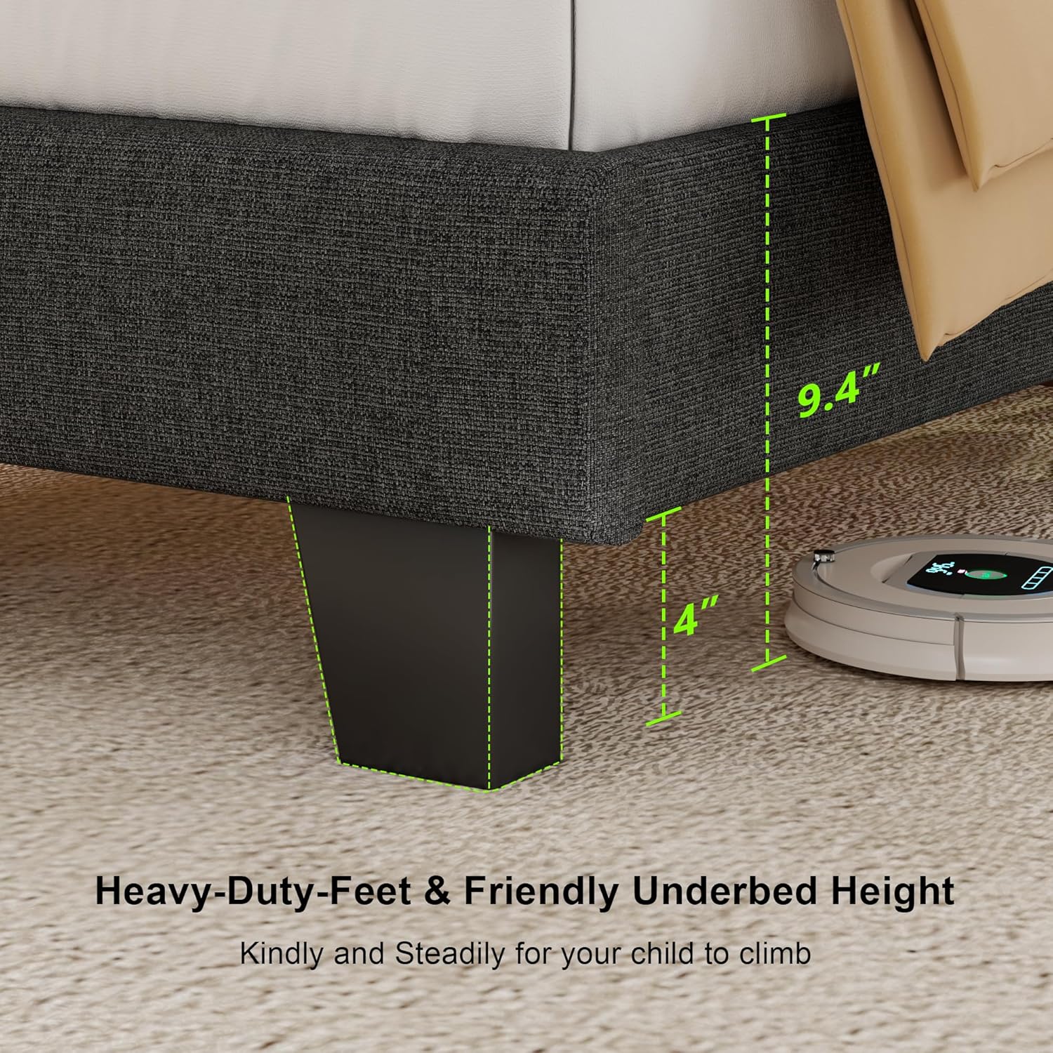 Feonase Twin Platform Bed Frame with Button Tufted Headboard, Upholstered Linen Bed with Wooden Slats Support, No Box Spring Needed, Noise-Free, Easy Assembly, Dark Grey