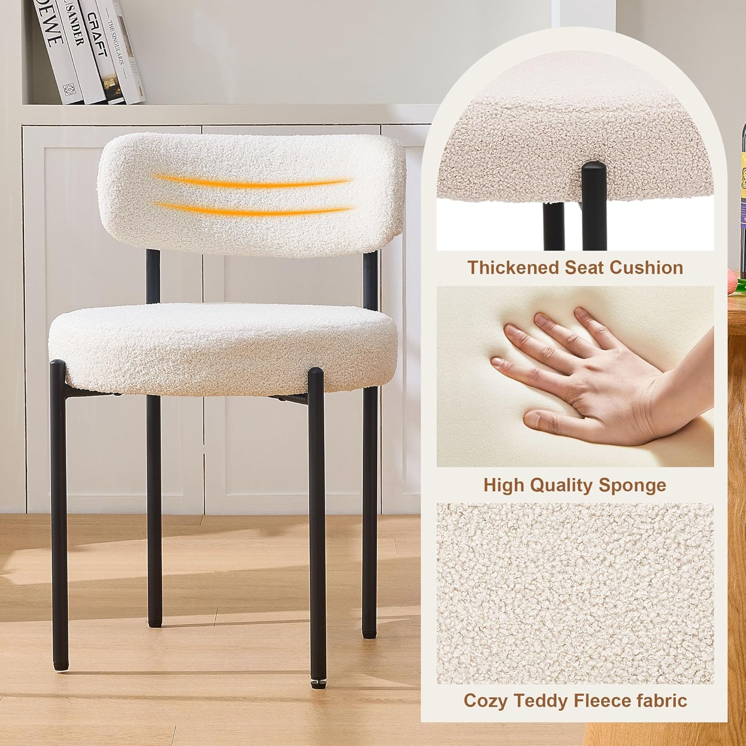- 【LUXURY TEDDY VELVET FABRIC】Our dining room chairs are wrapped in a luxurious teddy velvet fabric that is not only ultra-luxurious, but also soft to the touch. This high quality fabric is durable and easy to clean, ensuring that your dining chairs will stay in place for a long time.