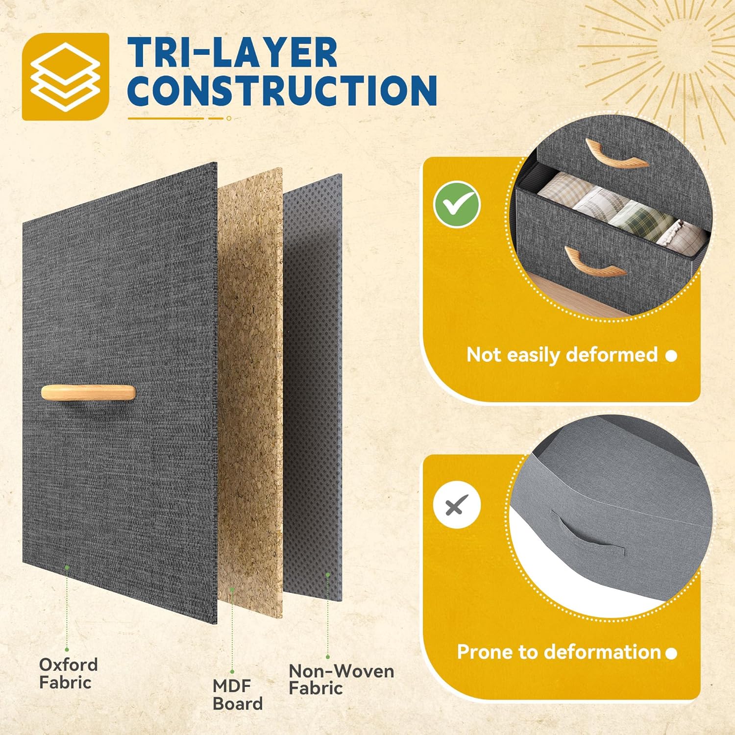 - ROOMY STORAGE SPACE- The fabric dresser can stash dresses, socks, pants, shirts etc.; Sizeable top grants all the surface area you need to display framed photos, lamps, and potted plants