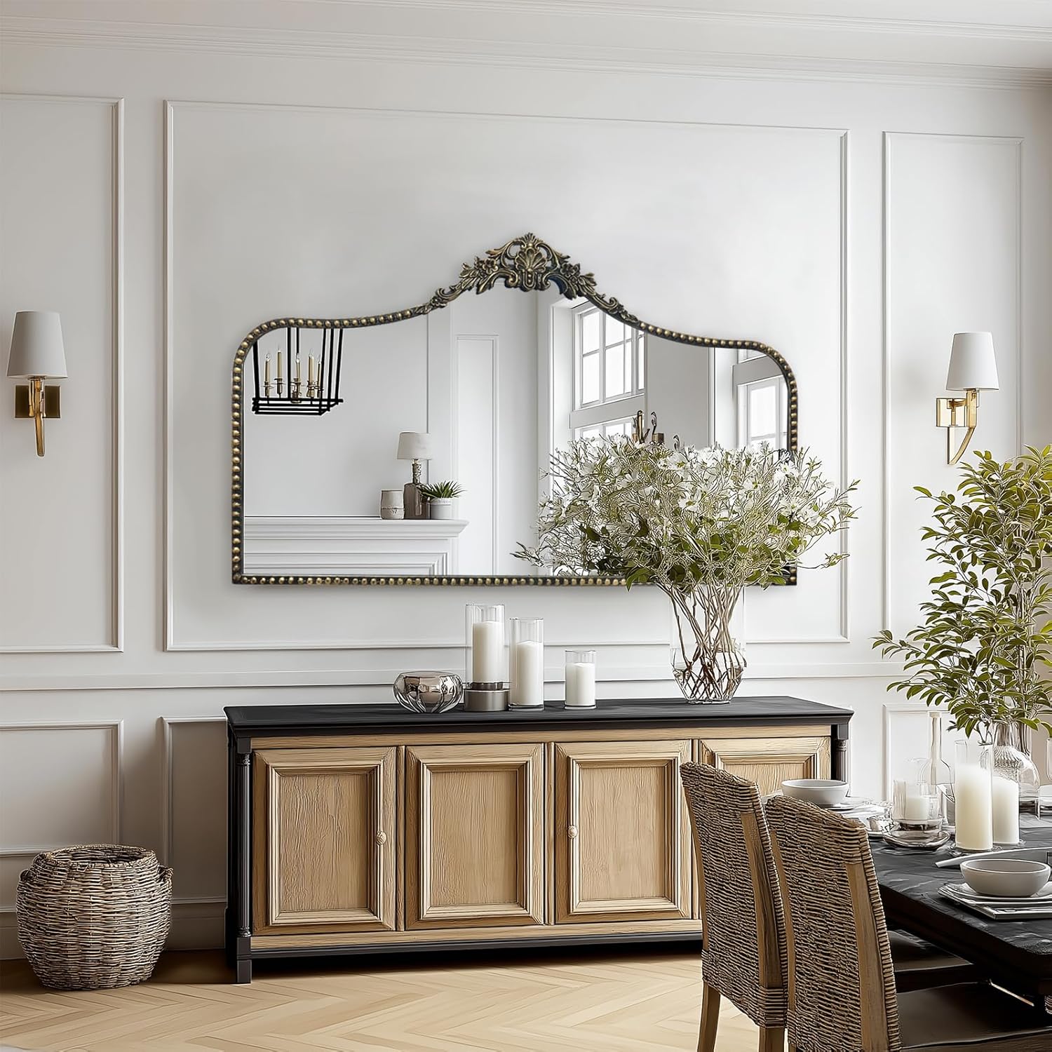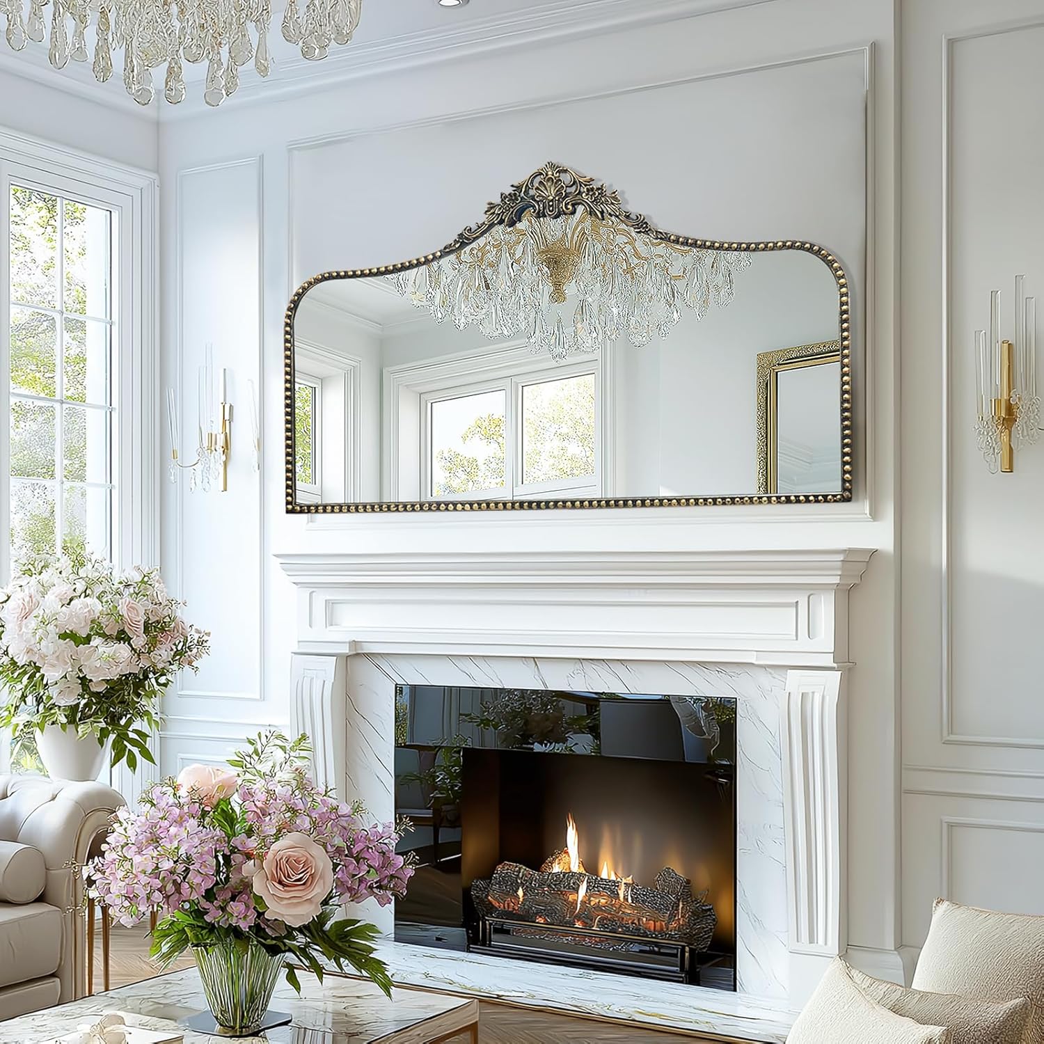 - Barque Style- Its ornate design, antique gold finish, and impeccable craftsmanship make it the perfect addition to any room. A statement piece that combines antique elegance with modern style. French country mirror will suitable for fireplace, bathroom, entryway, living room, bedroom, powder room, hall,and more.