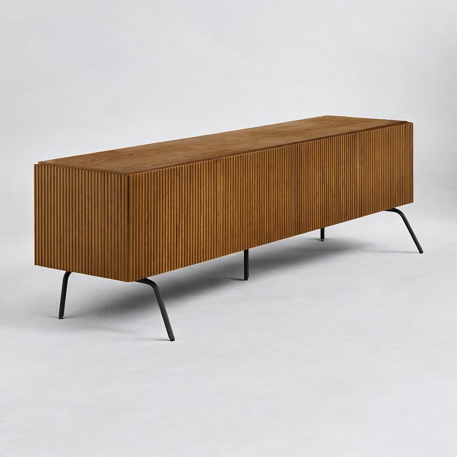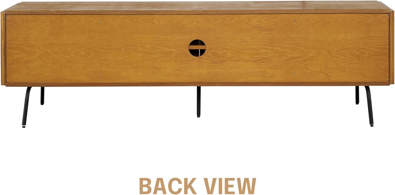 NTC Veil TV Stand with 4 Doors for TVs up to 75’’, Media Console with Vertical Groove Design and Metal Legs, Modern Entertainment Center for Living Room and Bedroom, Effortless Assembly, Rustic Oak