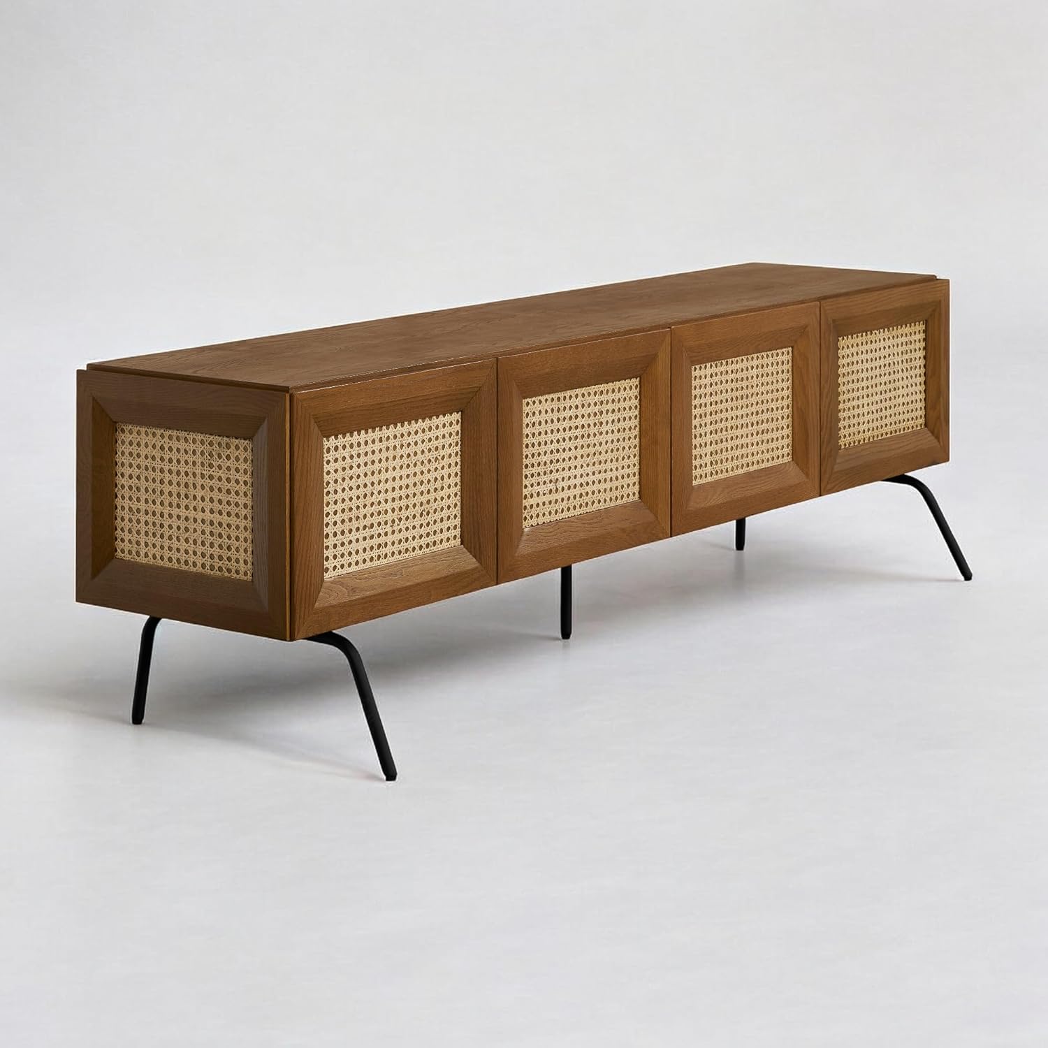 - NATURAL RATTAN ACCENTS – The handwoven rattan door panels add warmth and texture, offering a natural, airy feel while ensuring proper ventilation for media devices.