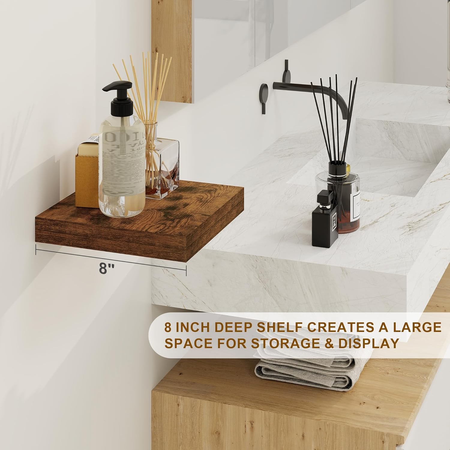 Fun Memories Floating Shelves, 8 Inch Deep Floating Shelves for Wall, 8 x 8 Wall Shelves, Rustic Wood Floating Shelf for Living Room, Bedroom, Bathroom, Rustic Brown Color, Set of 2