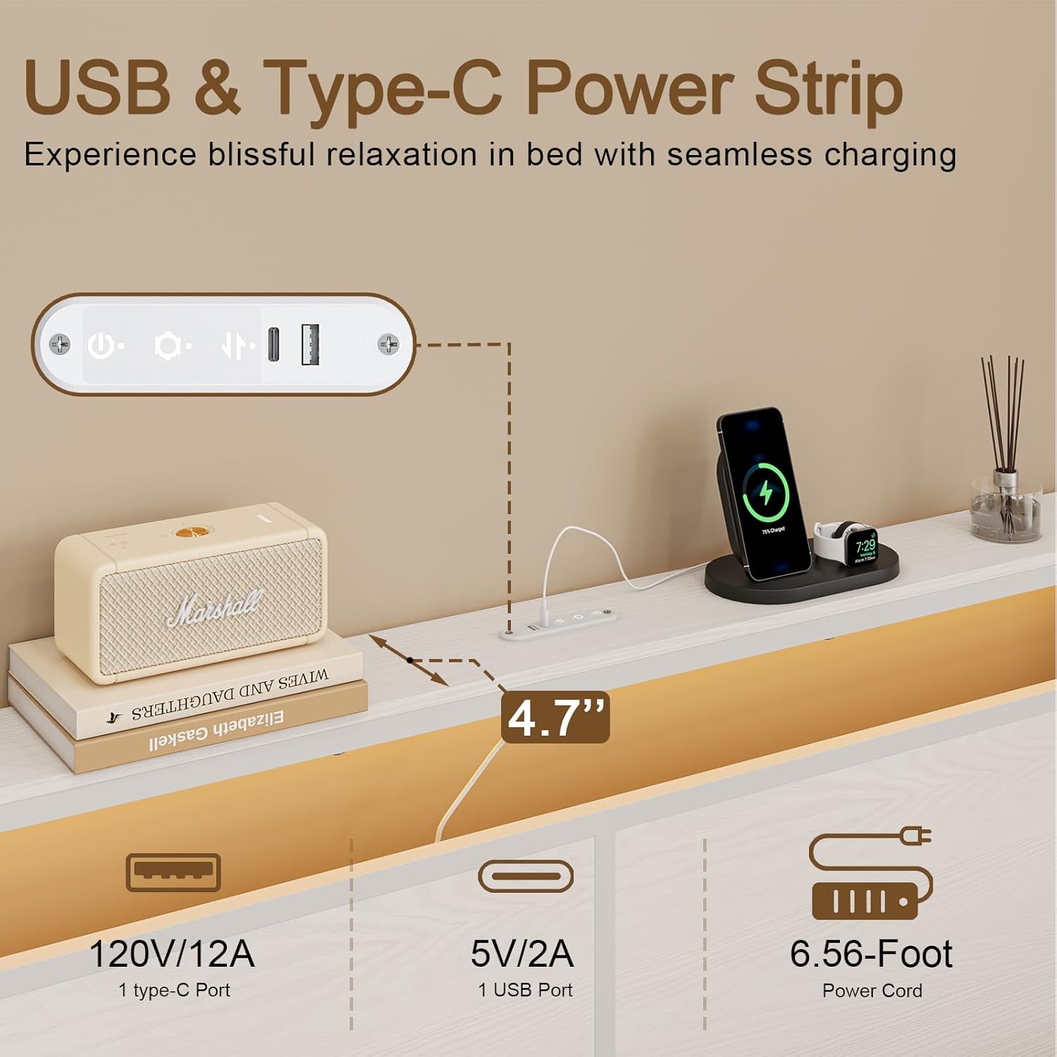 - User-friendly Design: a charging station built into the headboard allow you to charge your Phone and Pad. With a remote controller, you also could select 20 Static Colors and 22 Dynamic Modes for memorizing the colors that you prefer
