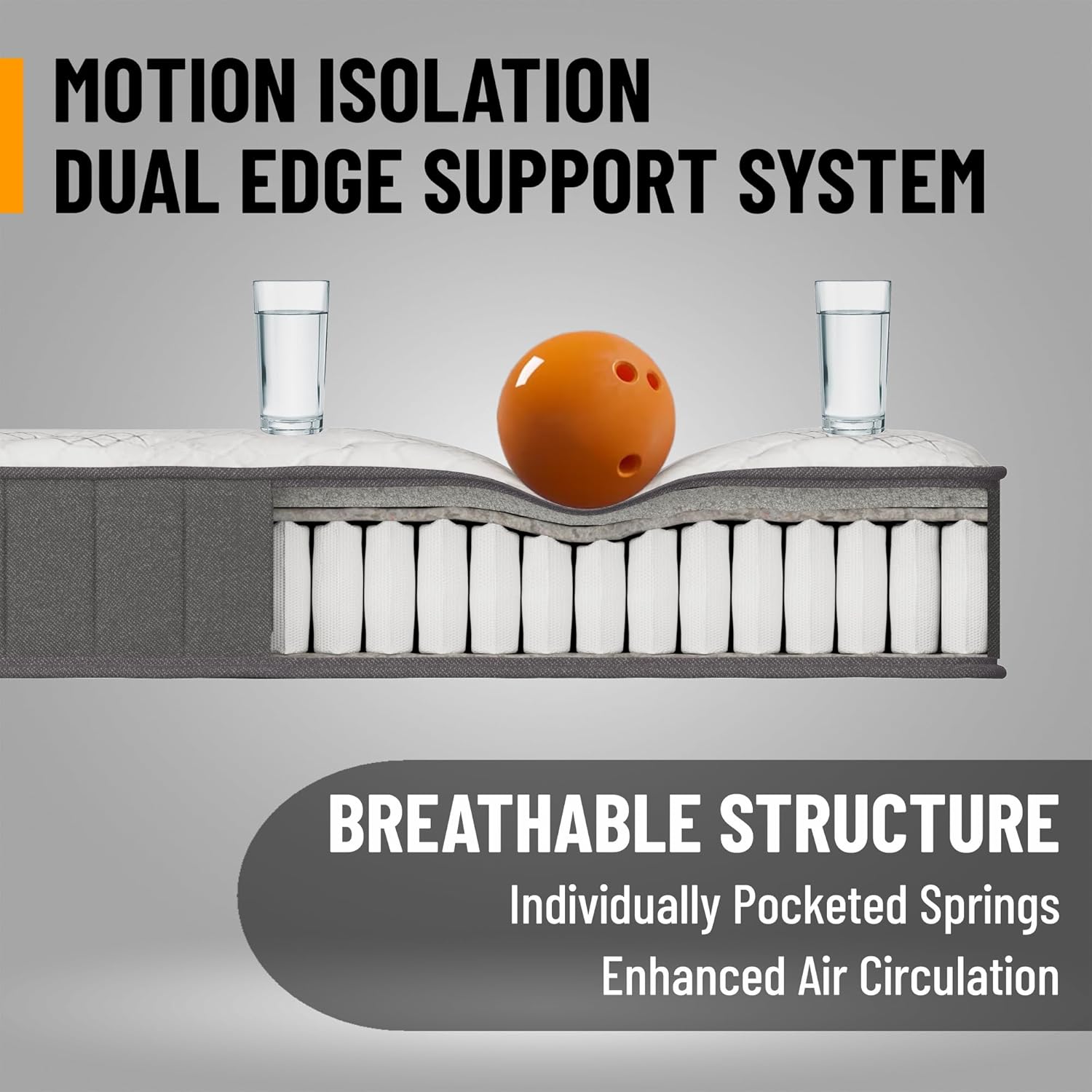 - [Motion Isolation]: Pocket coils minimize motion transfer, ensuring an undisturbed night's sleep even if your partner moves during the night.