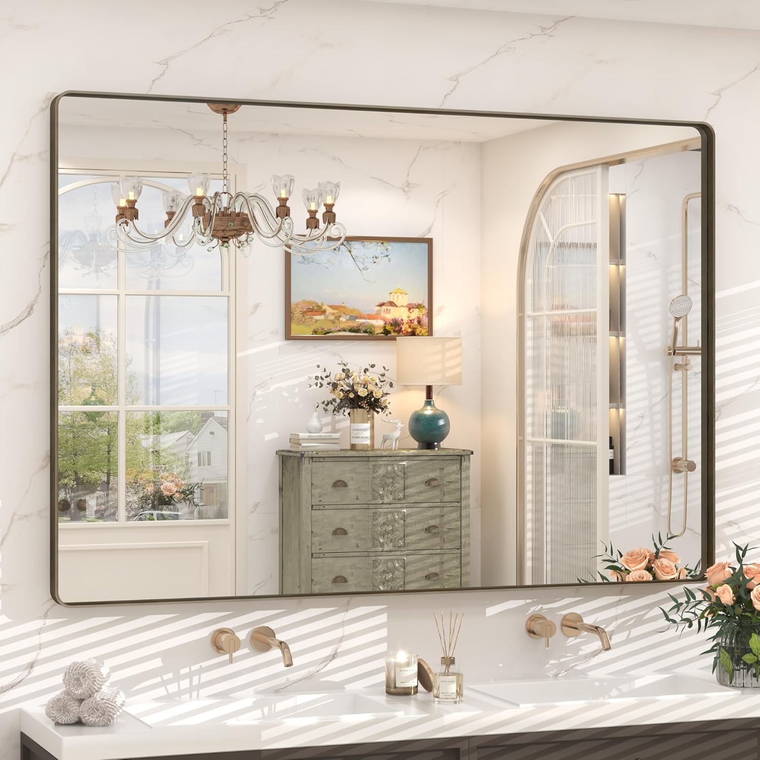 - 【Durable Brushed Bronze Framed Mirror】With round corner metal frame, CHARMOR bronze bathroom mirror looks elegant and feels smooth. The frame material is premium alumium alloy with brushed texture, which is stylish and more durable. Light weight, good corrosion resistance and wear resistance.