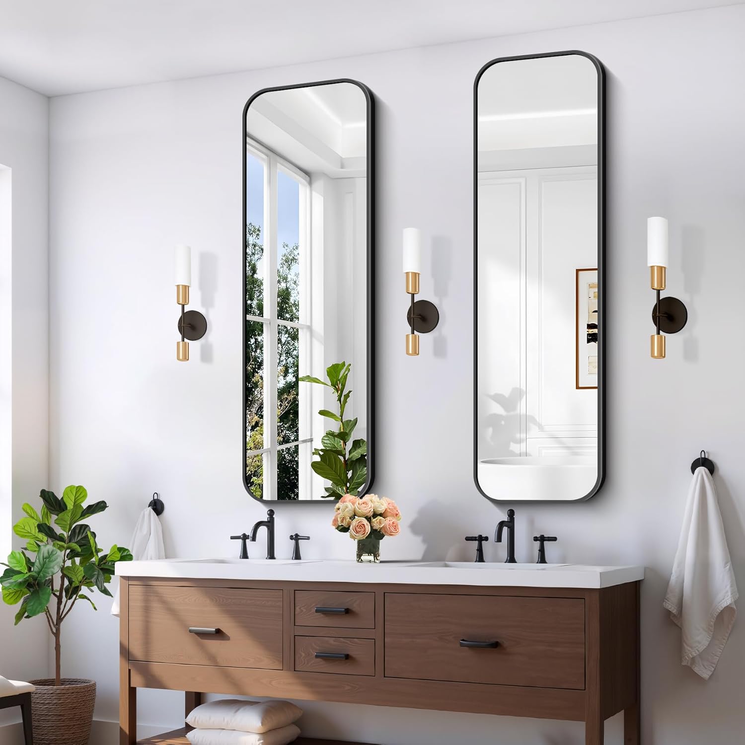 - Rounded Corner Design:The rounded corner rectangle mirror makes your bathroom more elegant and classic, which especially attracts your eyes. Ideal for bathroom decoration and make the space more brighter and larger.