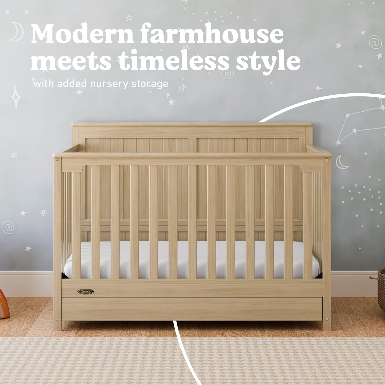 Graco Hadley 5-in-1 Convertible Crib with Drawer (Driftwood) – GREENGUARD Gold Certified, Fits Standard Crib Mattress, Converts to Toddler Bed, Daybed and Full Bed, 4 Adjustable Mattress Heights