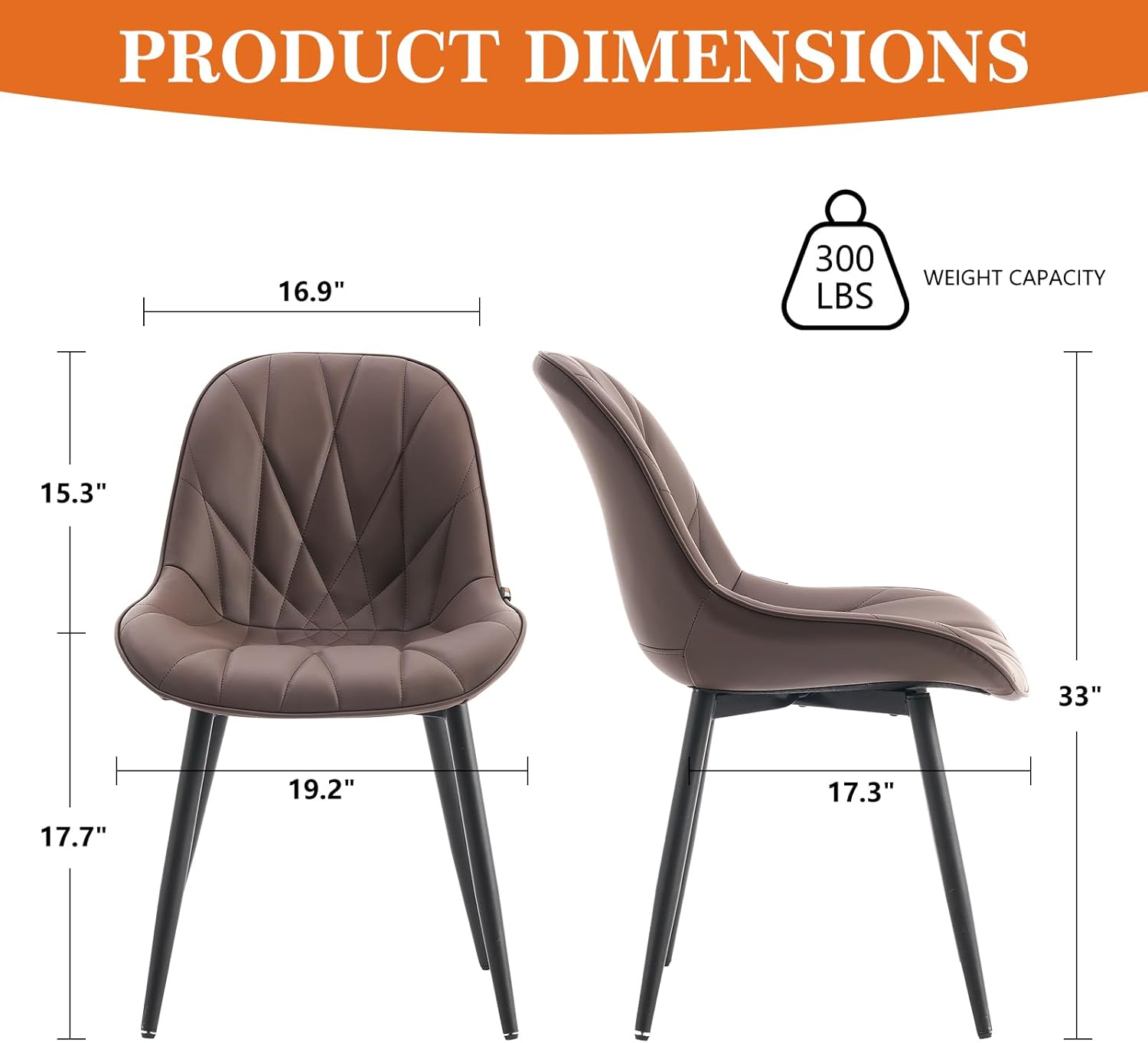 Rowill Modern Dining Chairs Set of 2 - Upholstered Faux Leather Kitchen Chairs with Soft Cushion Backrest, Sturdy Metal Legs & Non-Slip Pads, Perfectly Design for Home Dining Room, Kitchen, Brown