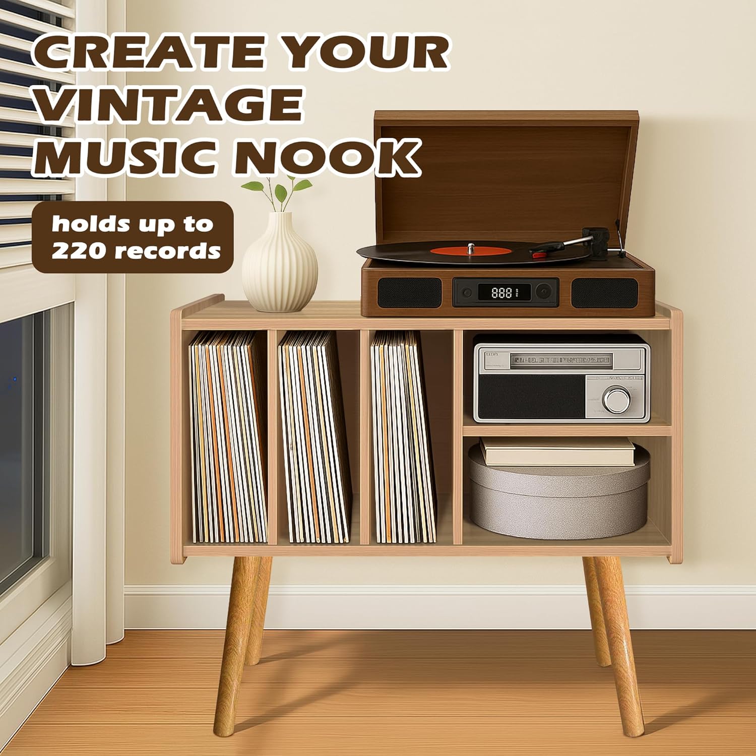 - 【Mid-Century Charm for Vinyl Lovers】Bring retro elegance to your living space with this stylish record player stand. Designed for music enthusiasts, it perfectly holds your turntable on top while organizing your vinyl collection, audio accessories, or decor below. With its elegant finish, tapered legs, and clean mid-century silhouette, this unit blends vintage appeal with everyday functionality.