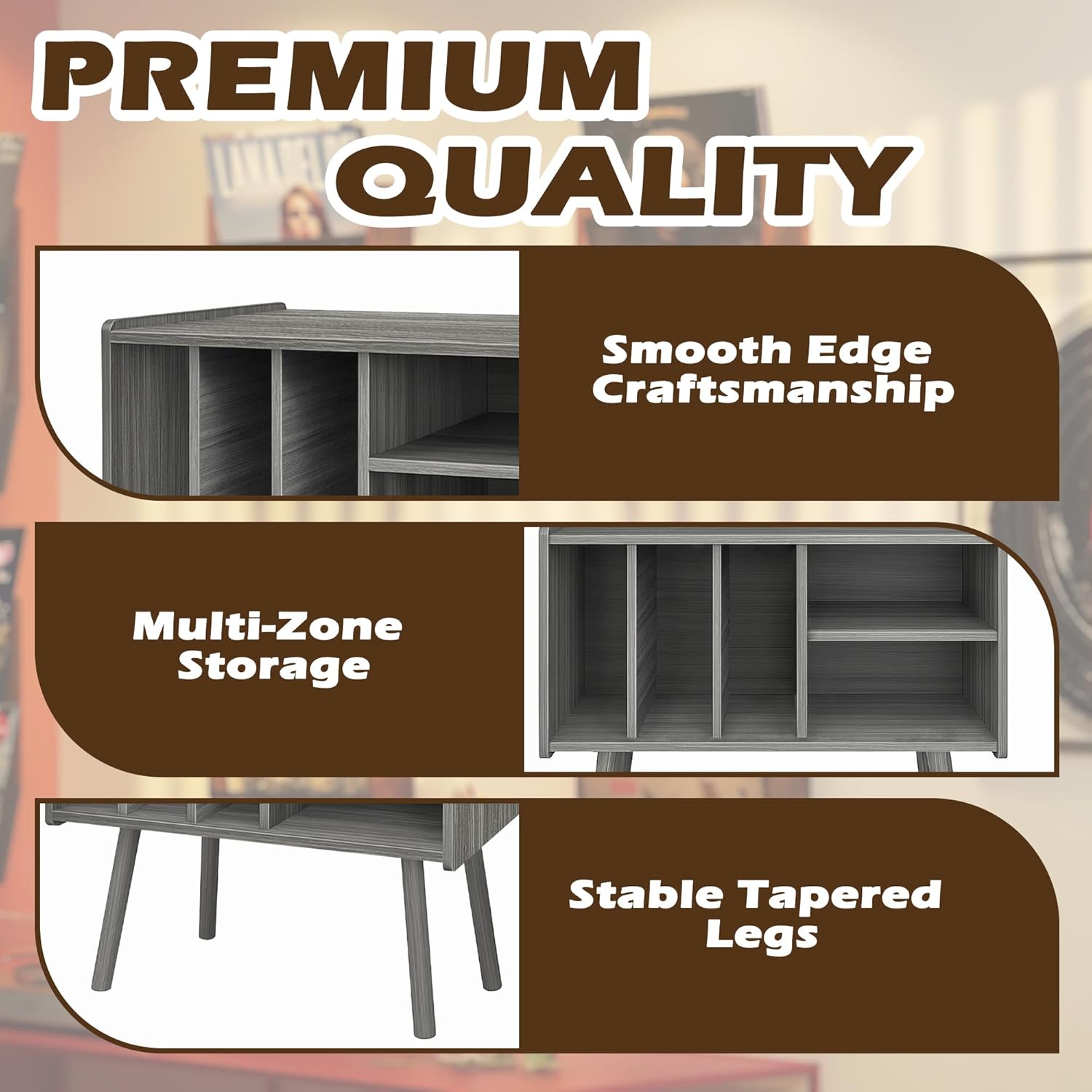 Record Player Stand with Vinyl Storage, Wooden Record Player Table with 5 Cabinet, Large Vinyl Record Player Stand, Record Player Holder, Record Player Shelf for Office Living Room, Gray