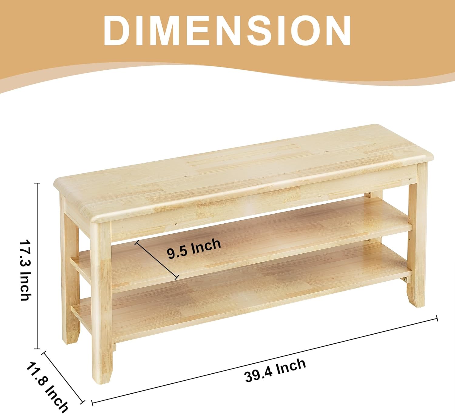 Shoe Storage Bench for Entryway - 3 Tier Shoe Rack for Front Door Entrance, Rubberwood Shoes Rack Height Adjustable, Entryway Bench with Shoes Storage for Any Room (Natural, 39.4" W)