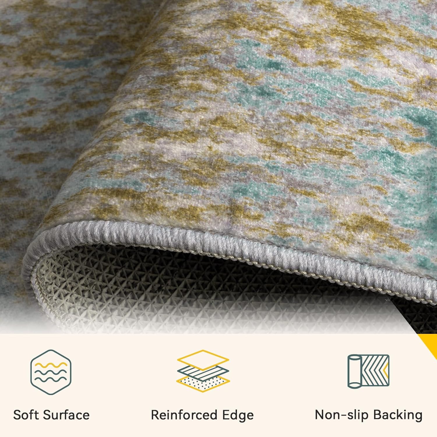 - Tides Series – Effortless style that flows with your life.This modern machine-washable non-slip rug features reinforced edges and a low-pile design that resists dirt. Its water-repellent surface makes spills easy to clean - liquids bead up for quick wiping. Simply machine wash in cold water (no bleach) to refresh. The non-slip backing keeps it securely in place. A perfect blend of function and contemporary design for active homes.