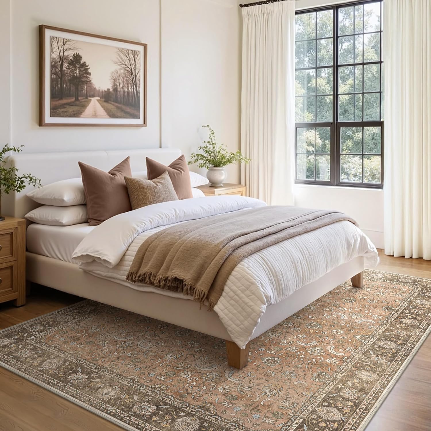 - Timeless Vintage Design:This chestnut rug elegantly combines a timeless floral design with a muted color palette to infuse your living space with a touch of vintage charm. Its unique texture and patterns add a layer of sophistication and comfort to any room, making it a versatile addition to both modern and traditional decors.