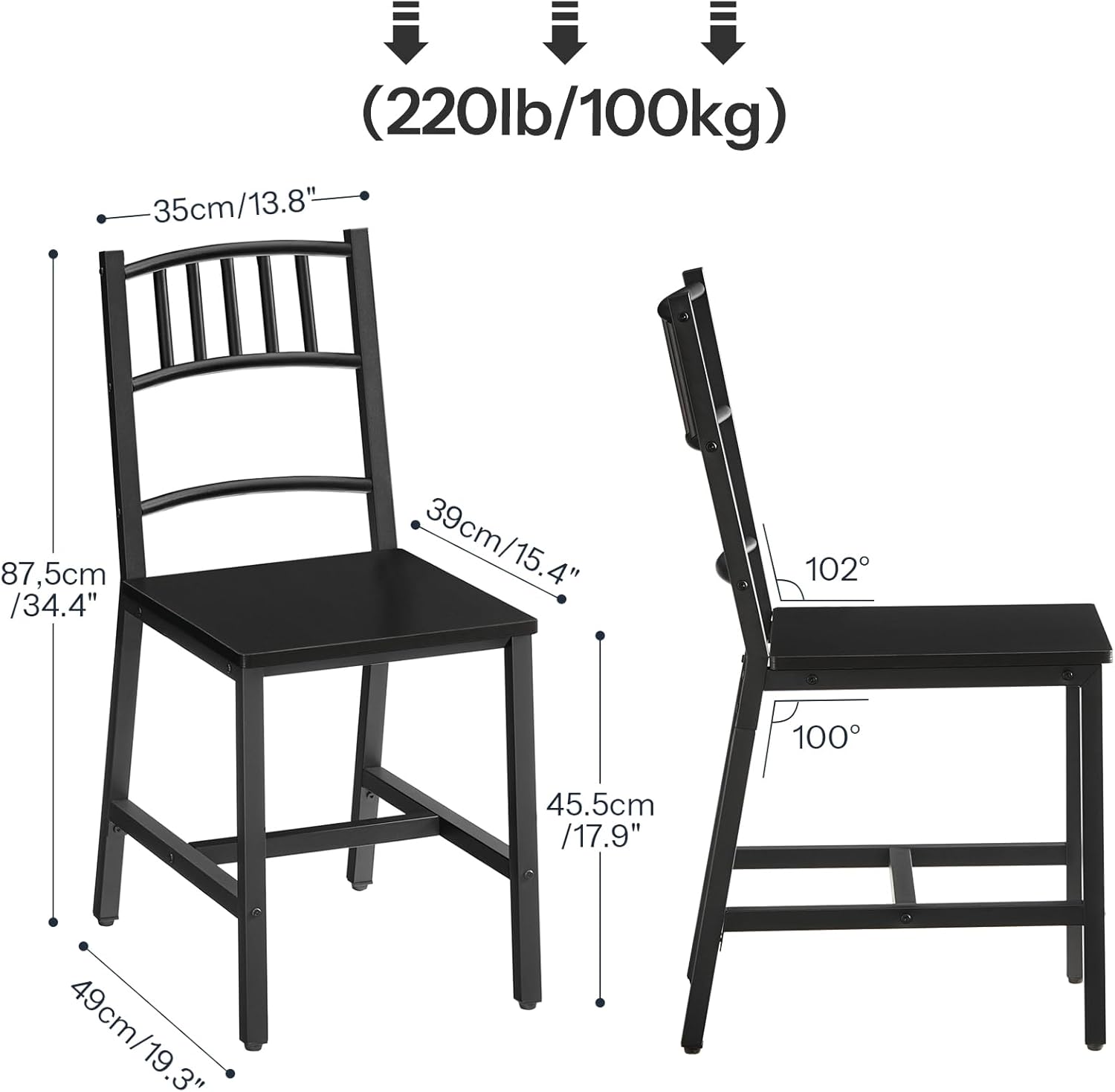 HOOBRO Kitchen Chairs Set of 2, Wooden Dining Room Chairs with Metal Frame, Dining Chairs with Back, Easy to Assemble, Farmhouse Dining Chairs for Kitchen, Living Room, Black BB39CD01