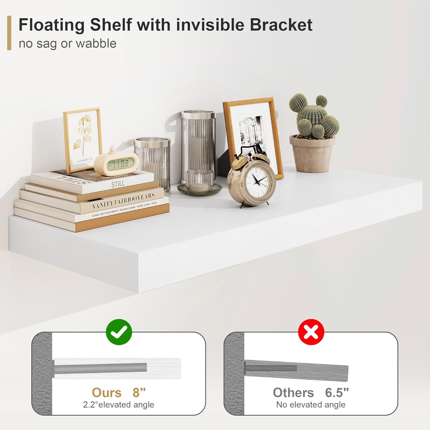 - Sturdy and Easy to install: Includes all necessary hardware to make these floating shelves extremely easy to assemble. We also provide you with detailed install instructions for you to install the shelves in a few minutes.If youβre looking for an easy way to add some functional style to your room, It highly recommend definitely recommend giving these a try!