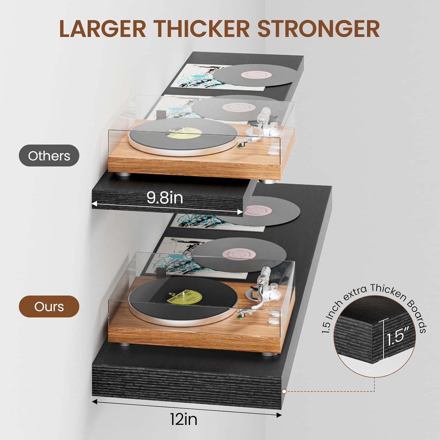 - Extra Deep Floating Shelves: Measuring 11.6” D x 35.4” W x 1.5” H, these shelves are crafted for maximum depth and durability. The spacious 12” depth gives you plenty of room for stylish display, organized storage, and decorative accents. Perfectly suited for your bathroom, kitchen, or living room, they enhance both function and flair in any space!